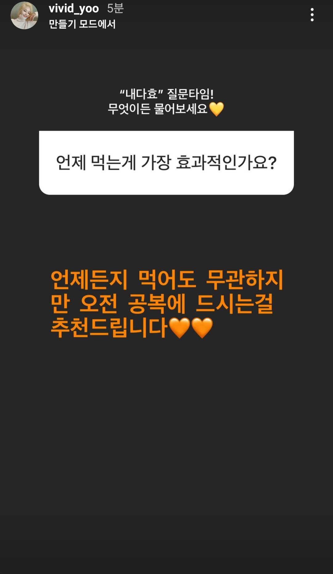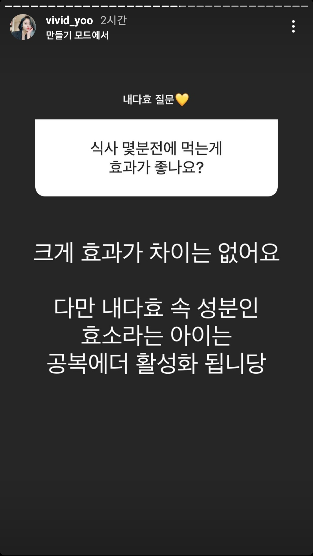 저는 아침에 일어나서 공복에 먹는 게 가장 좋았어요.