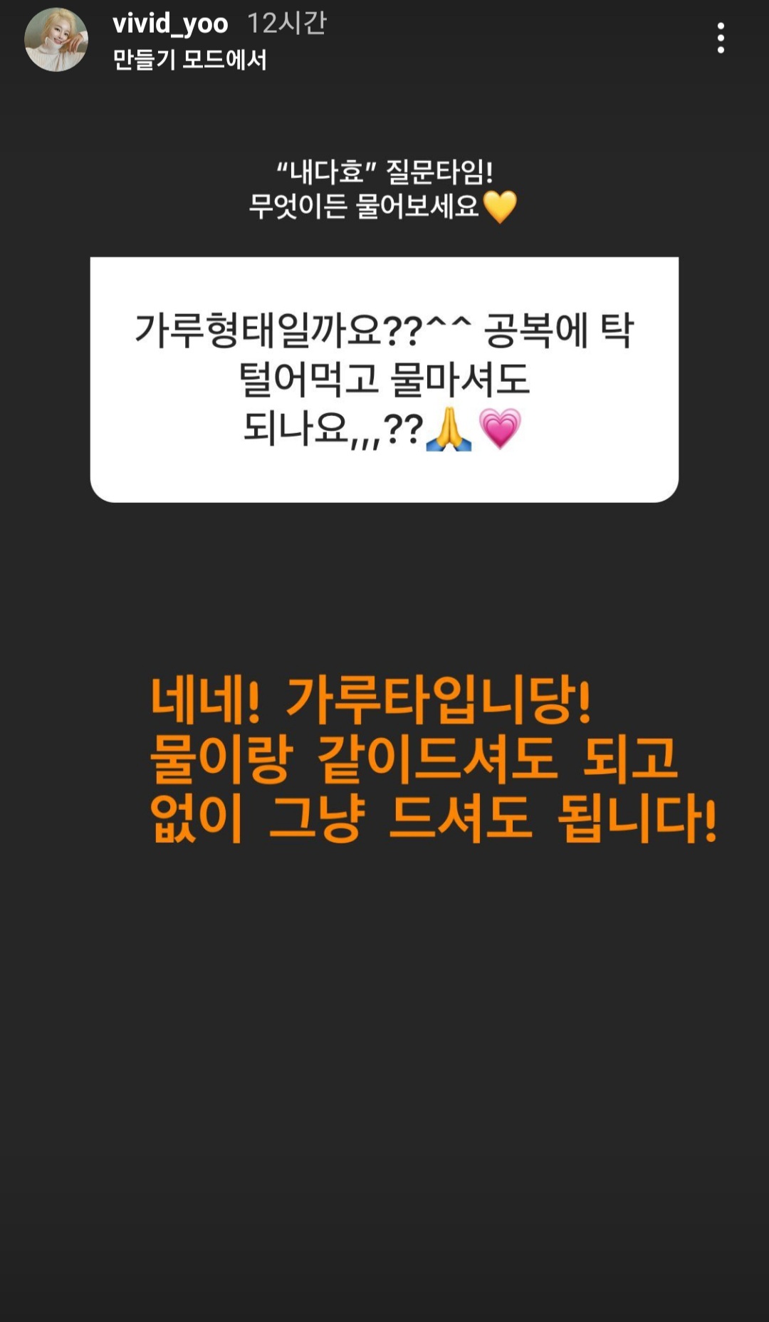 저처럼 물 없이 바로 털어 드셔도 되고
