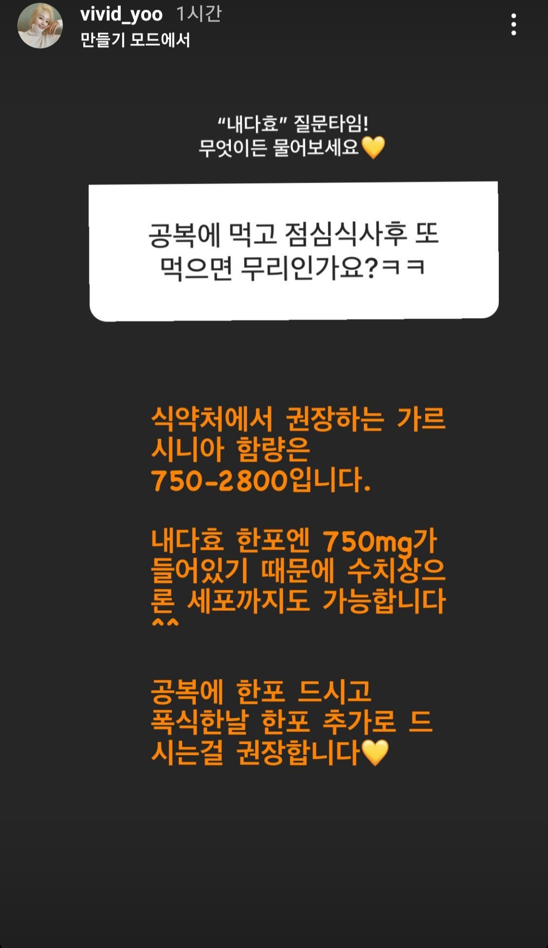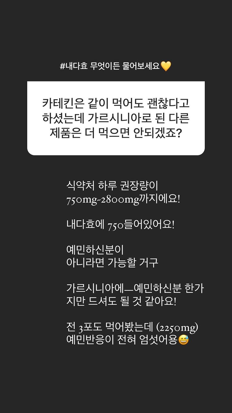 내다효 1포에 가르시니아 750mg이 들어가 있어서