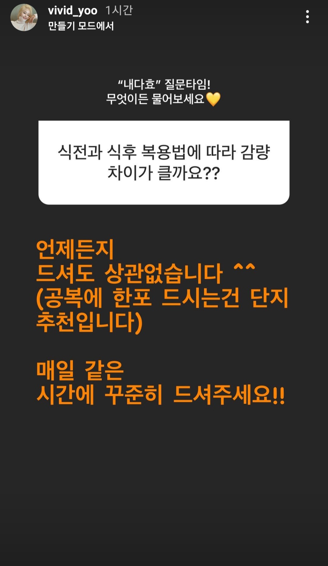 무엇보다 꾸준히 드시는 게 가장 중요해요 !!