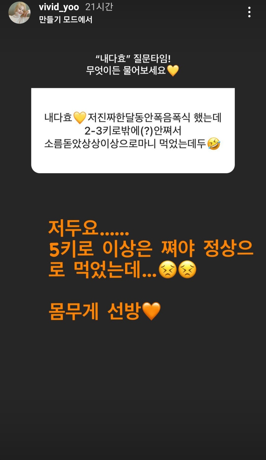 많이 먹은 탓에 급격히 3kg 쪘을 때도