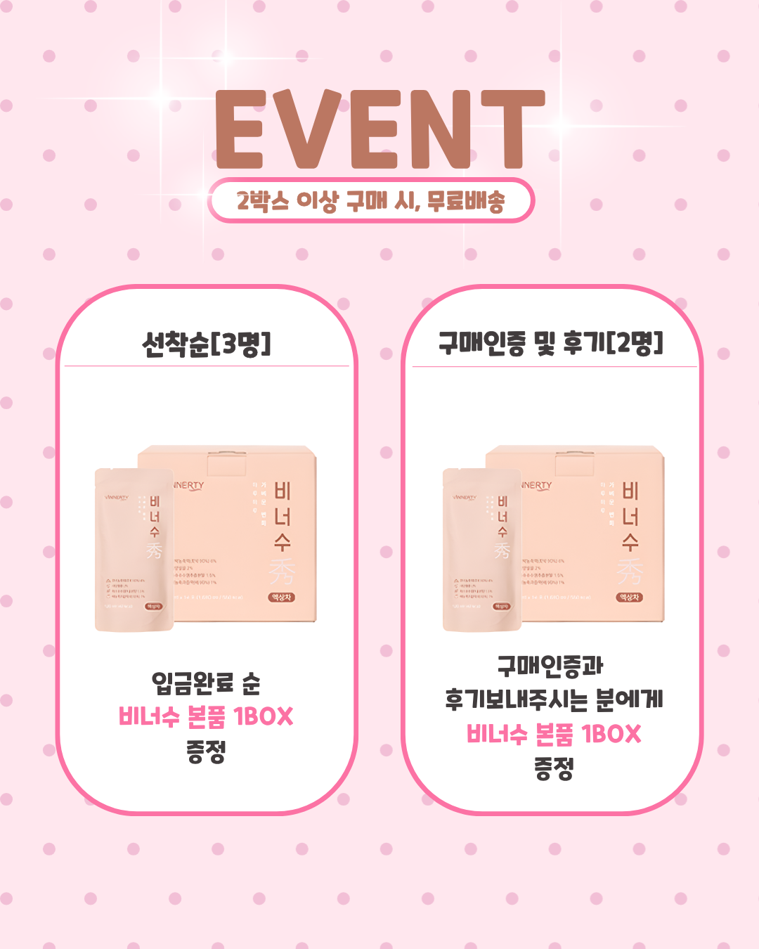 2. [2명] 구매인증 & 후기 : 비너수 본품 1박스 증정