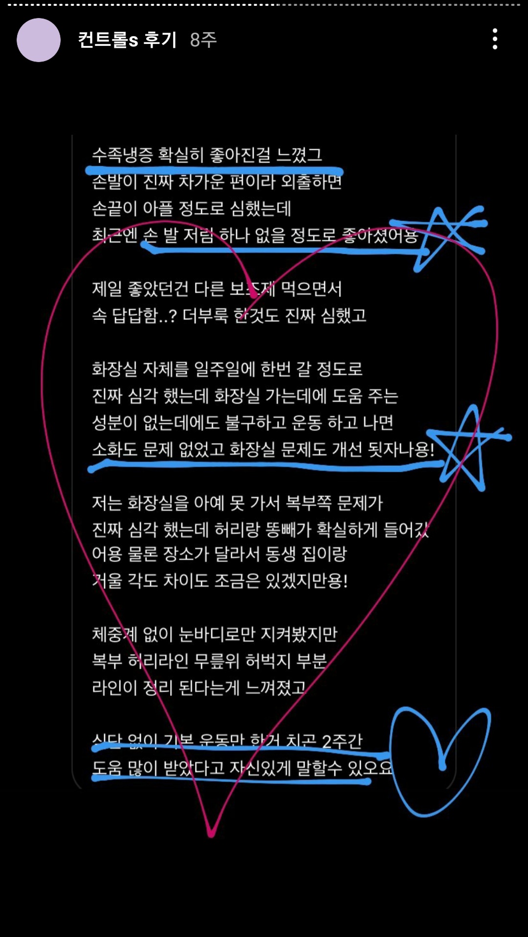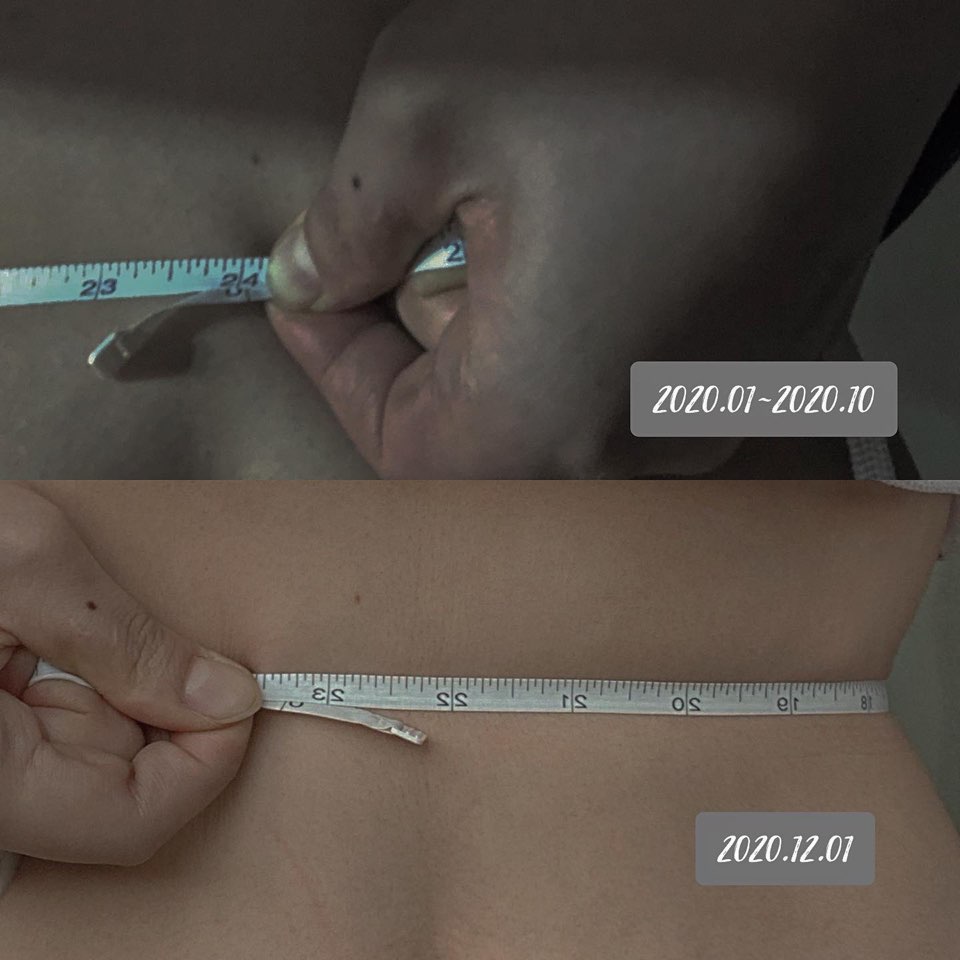 컨트롤 S를 한달 동안 꾸준히 먹고 허리 사이즈를 재봤어요!