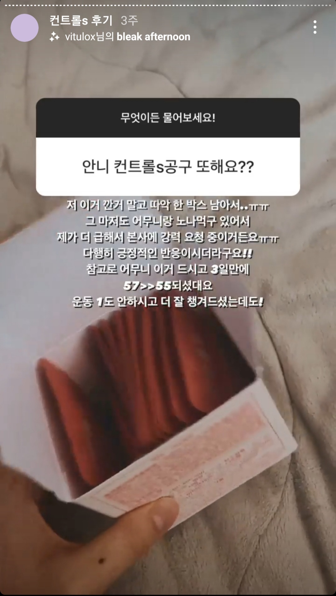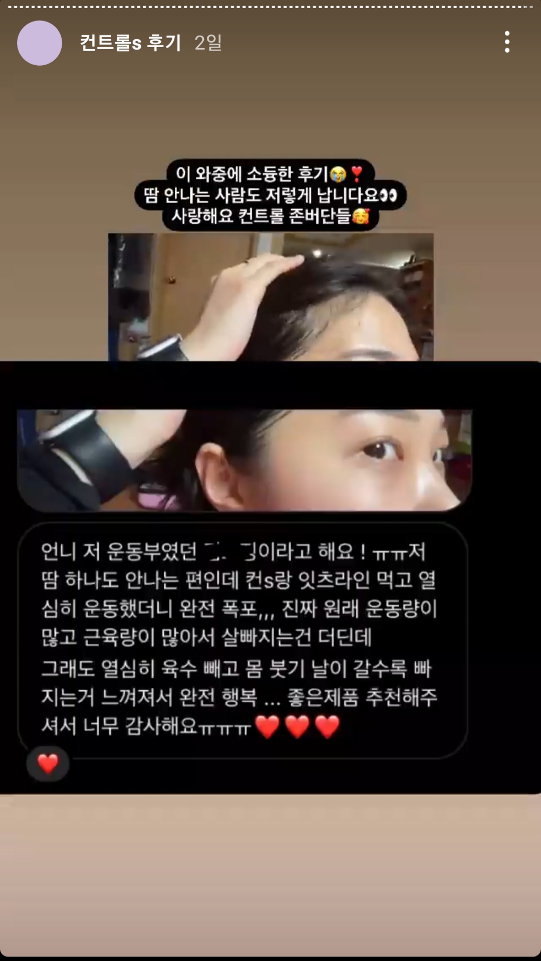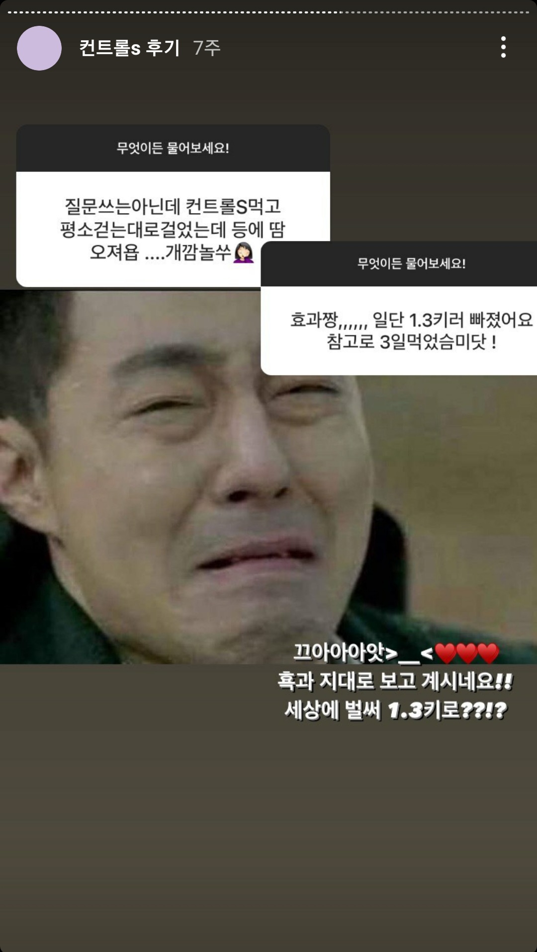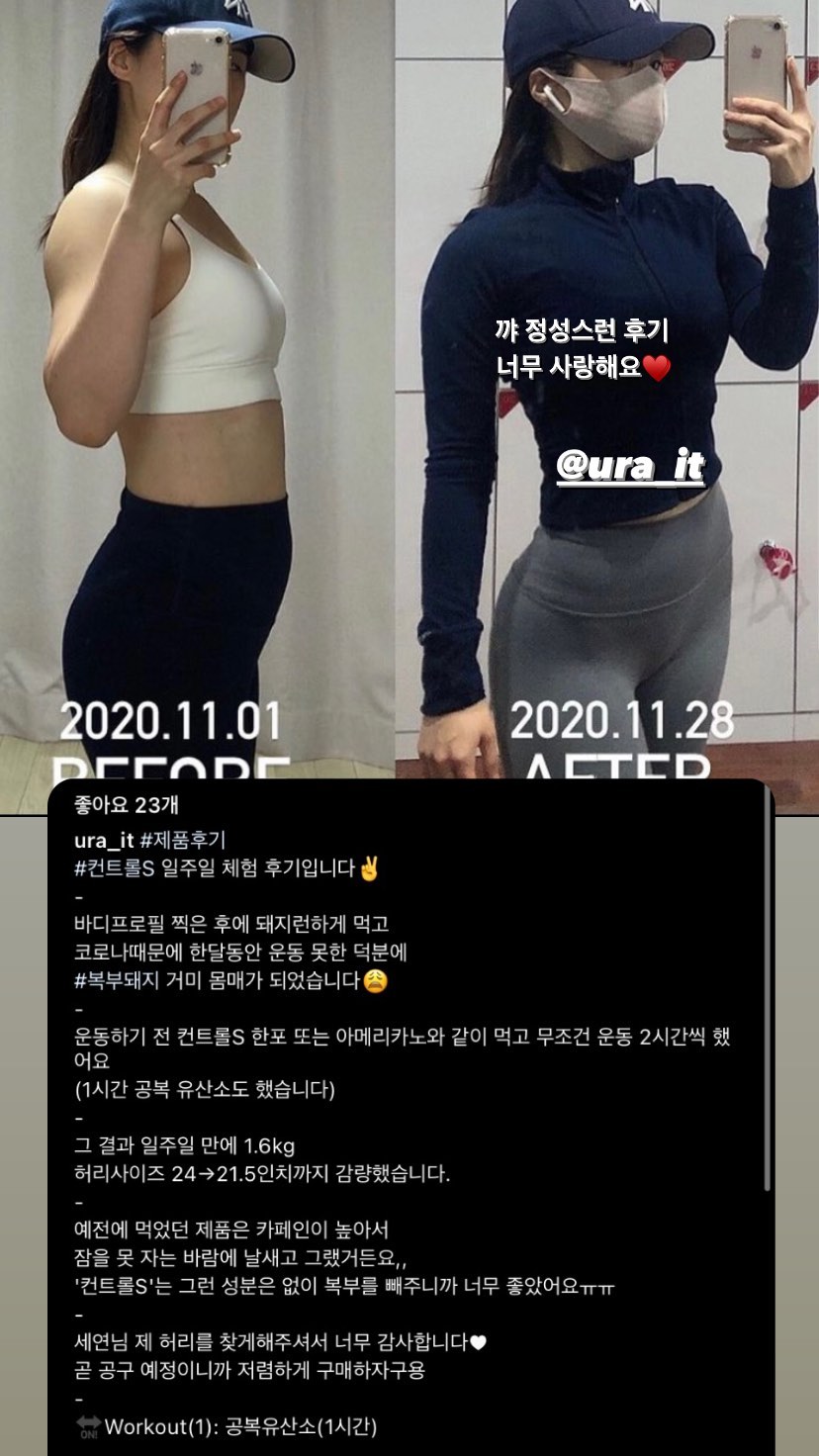 저는 위에서 말했다시피 식단 1도 안하는 대신 컨트롤 S 먹으면서 평소처럼 운동만 병행했는데요,