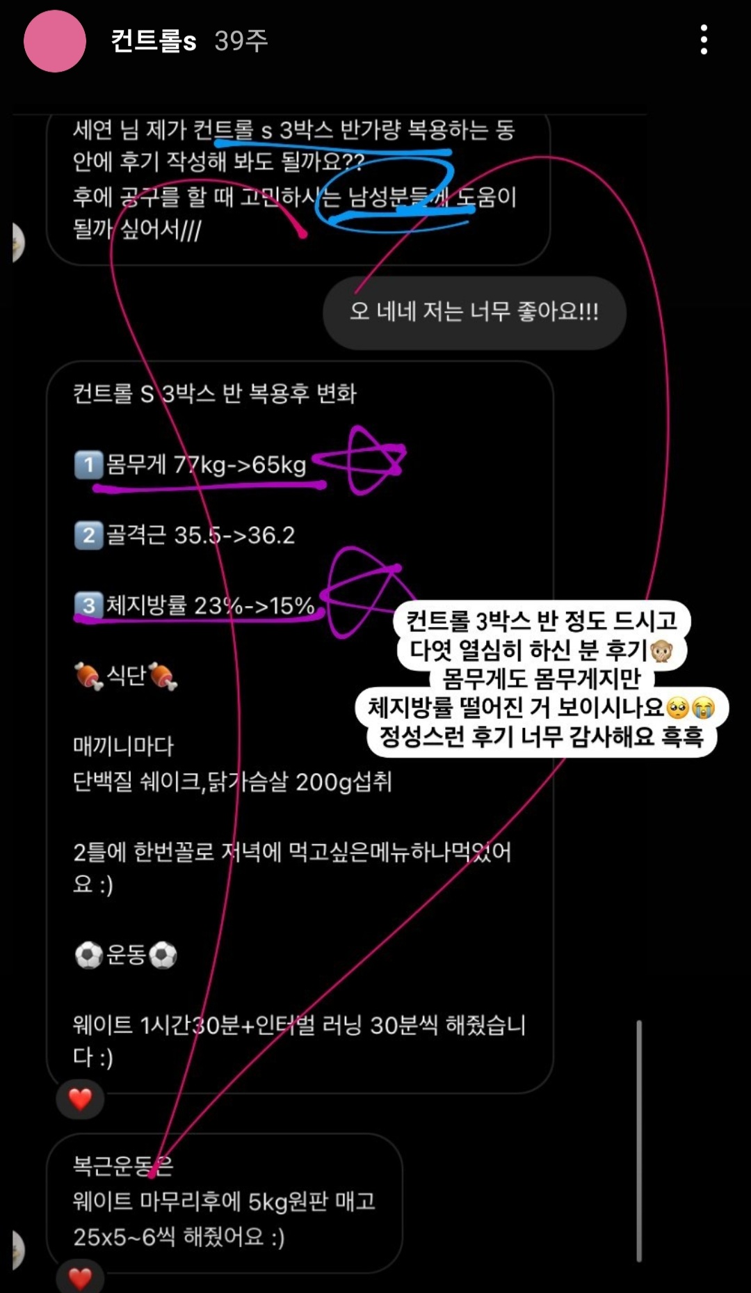 앞으로 컨트롤 S 먹으면서 단백질 섭취도 늘리고 운동도 꾸준히 할 생각이에요!