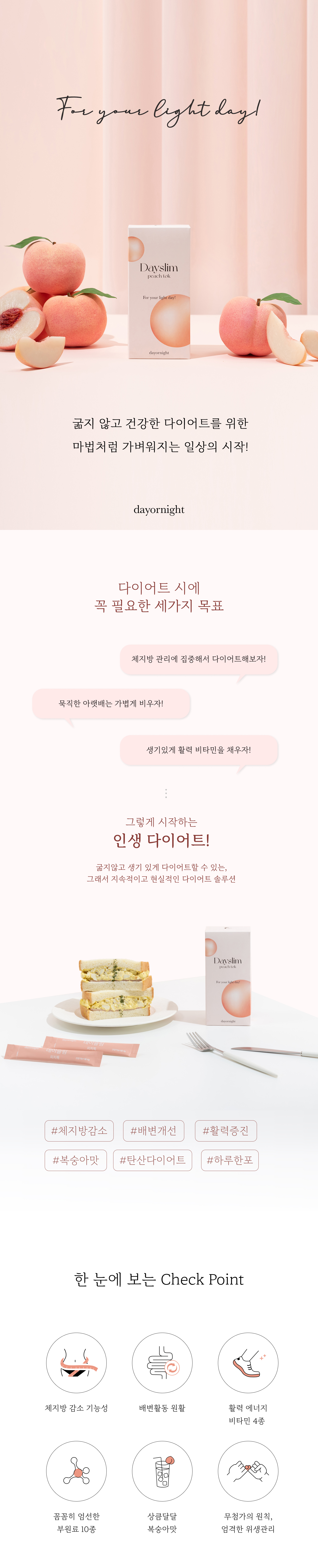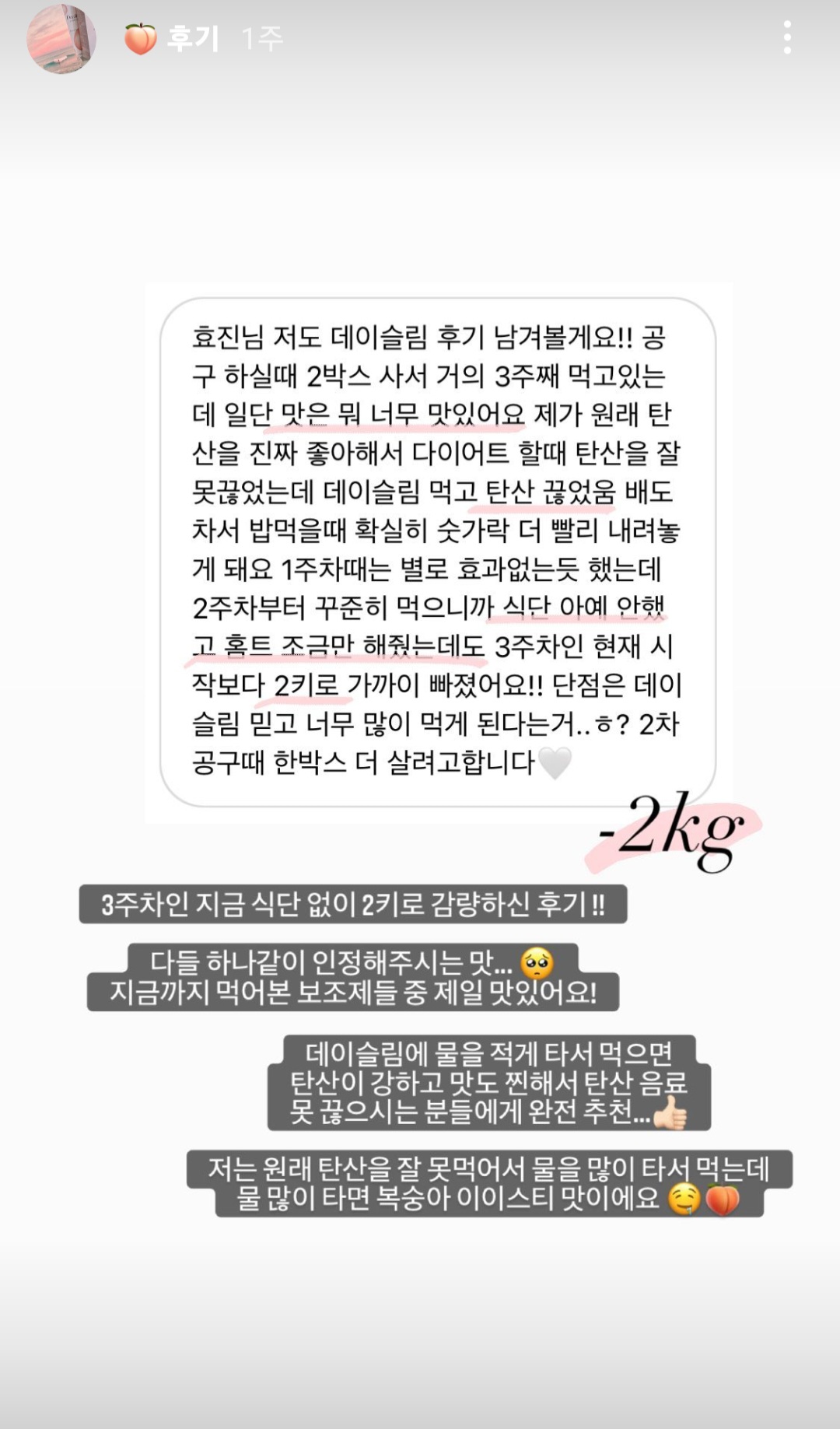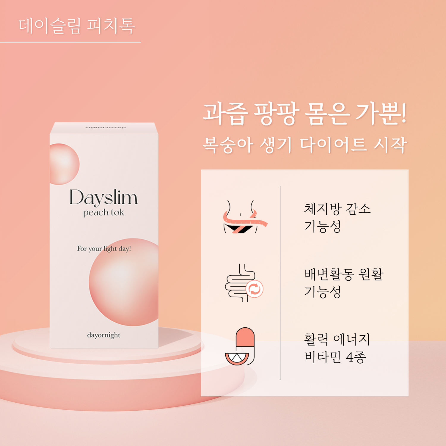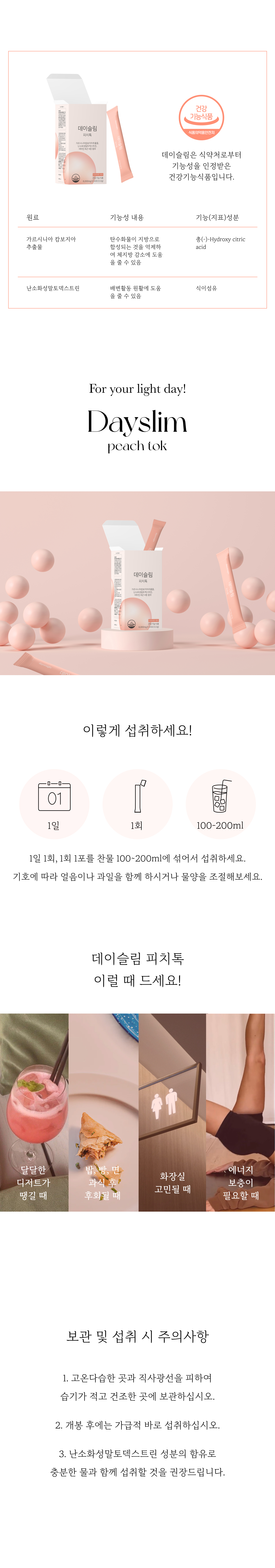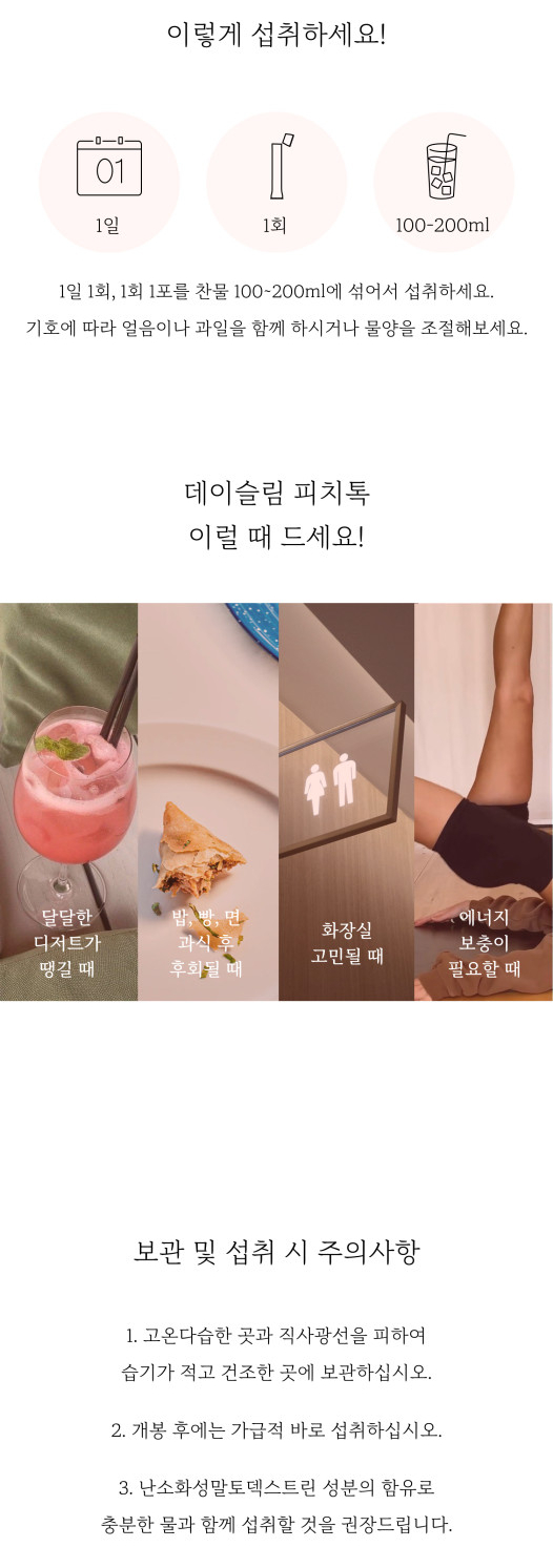 데이슬림 피치톡 하나에 담았어요 .