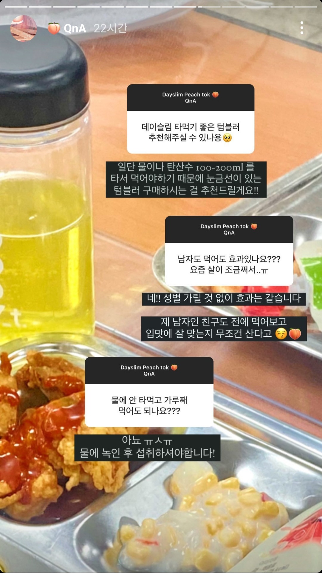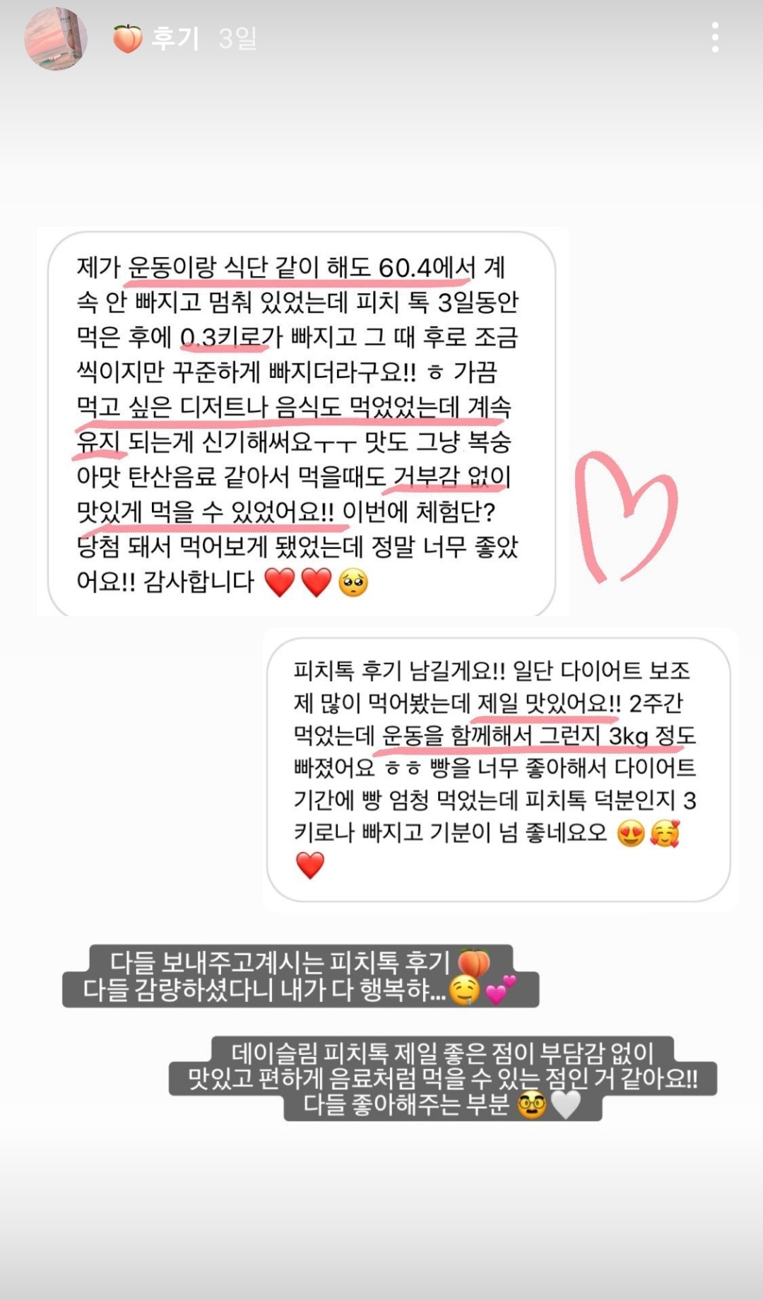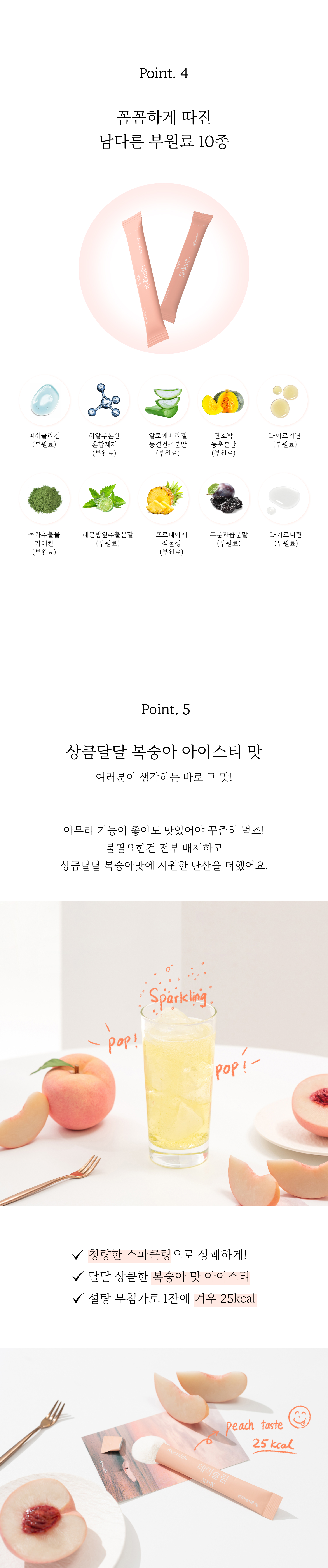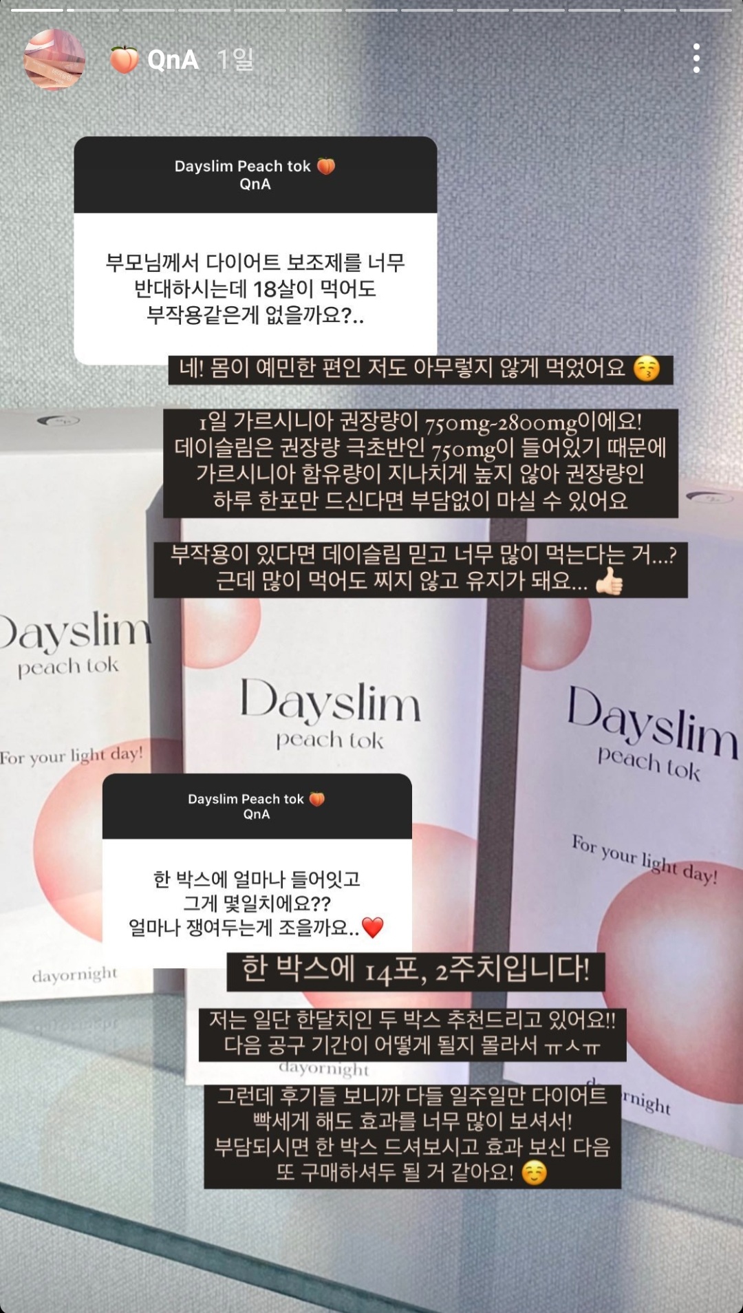 데이슬림 피치톡 하나에 담았어요 .