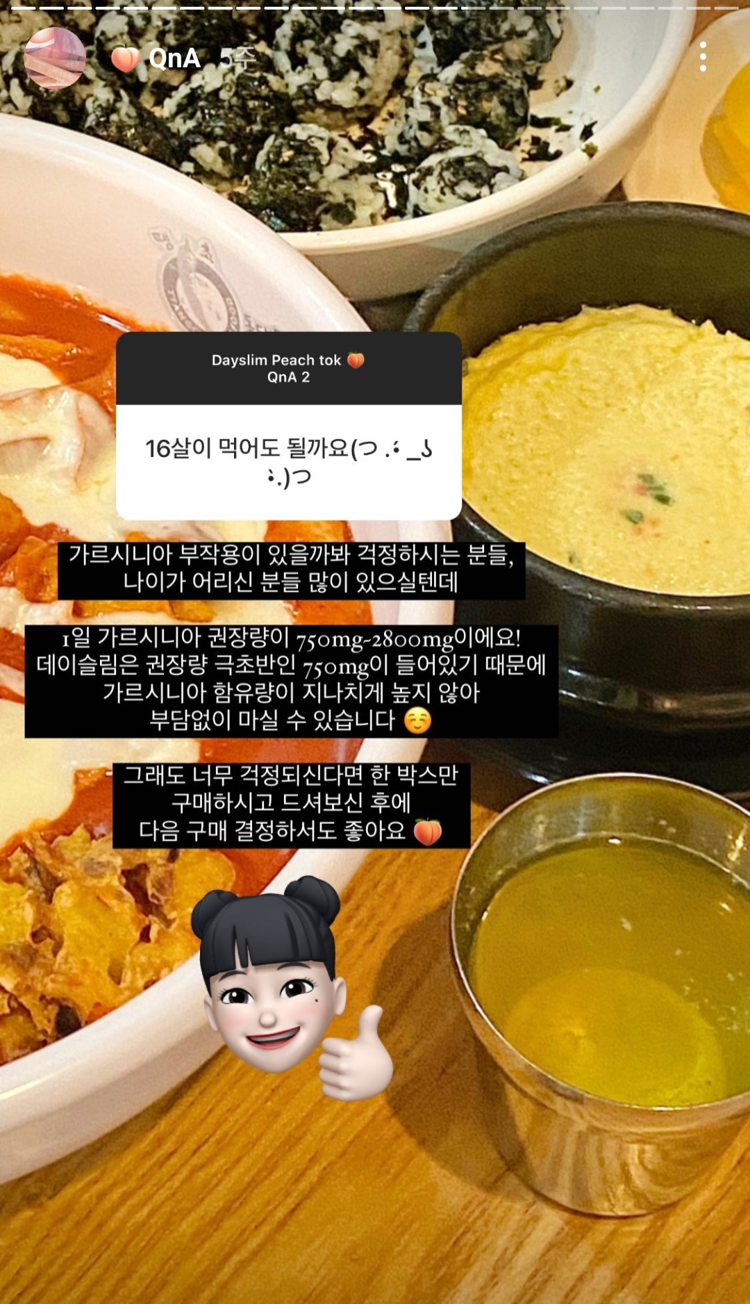 데이슬림 피치톡의 1포당 가르시니아 함량은 딱 750mg이라