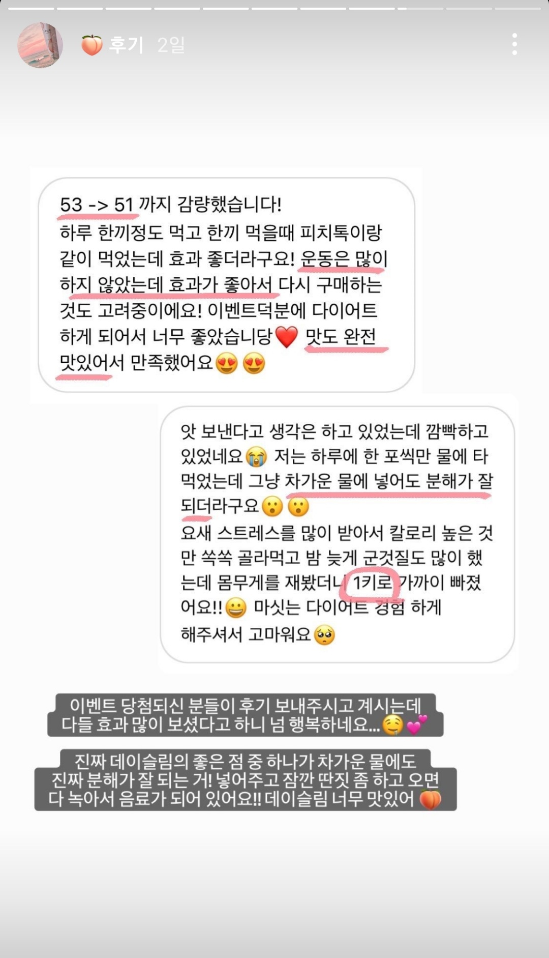 데이슬림에 폴인럽한 이벤트 당첨자분들과 구매자분들 후기부터 보시죠!!