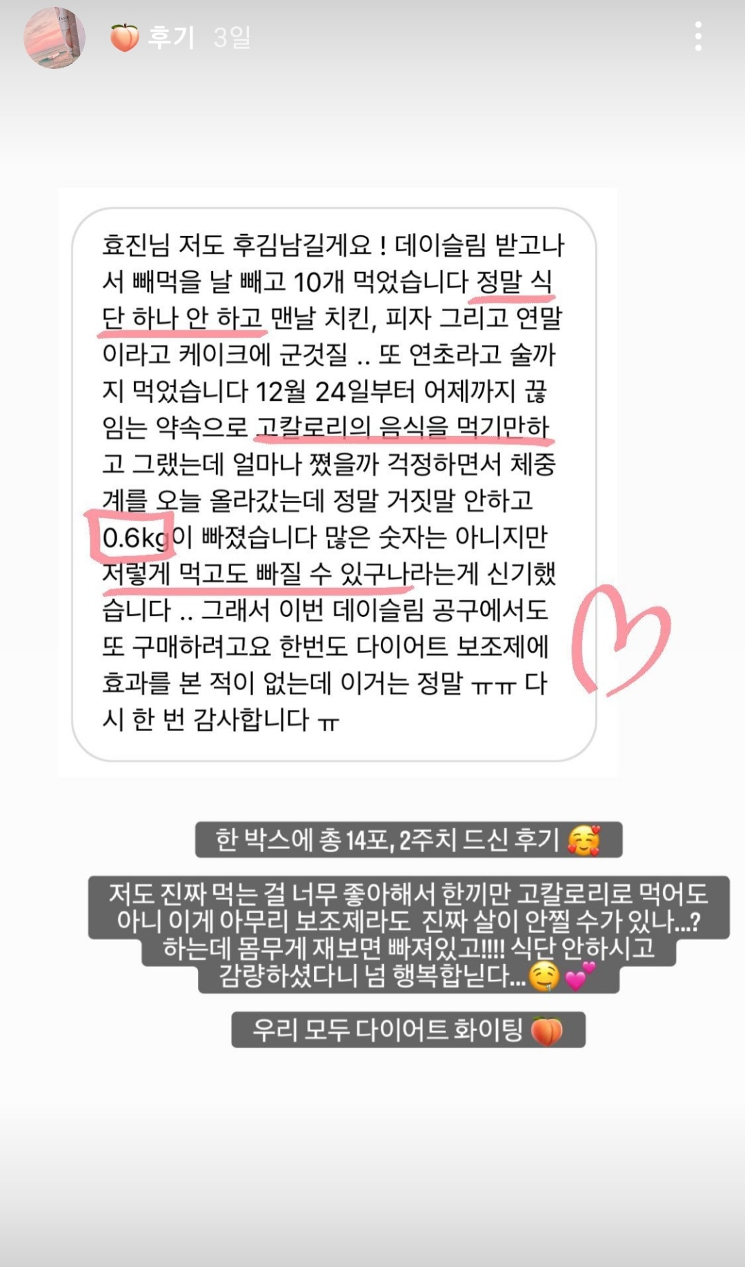12월 3일부터 데이슬림 먹기 시작했는데