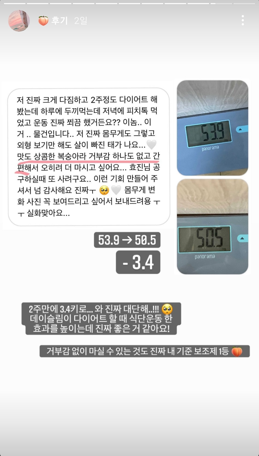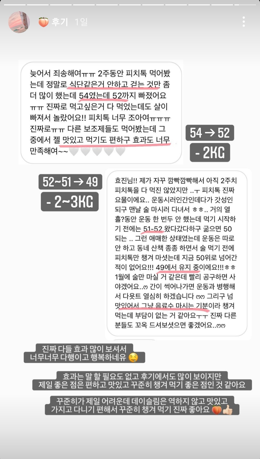 데이슬림 피치톡 먹기 전후 비교해봤어요!