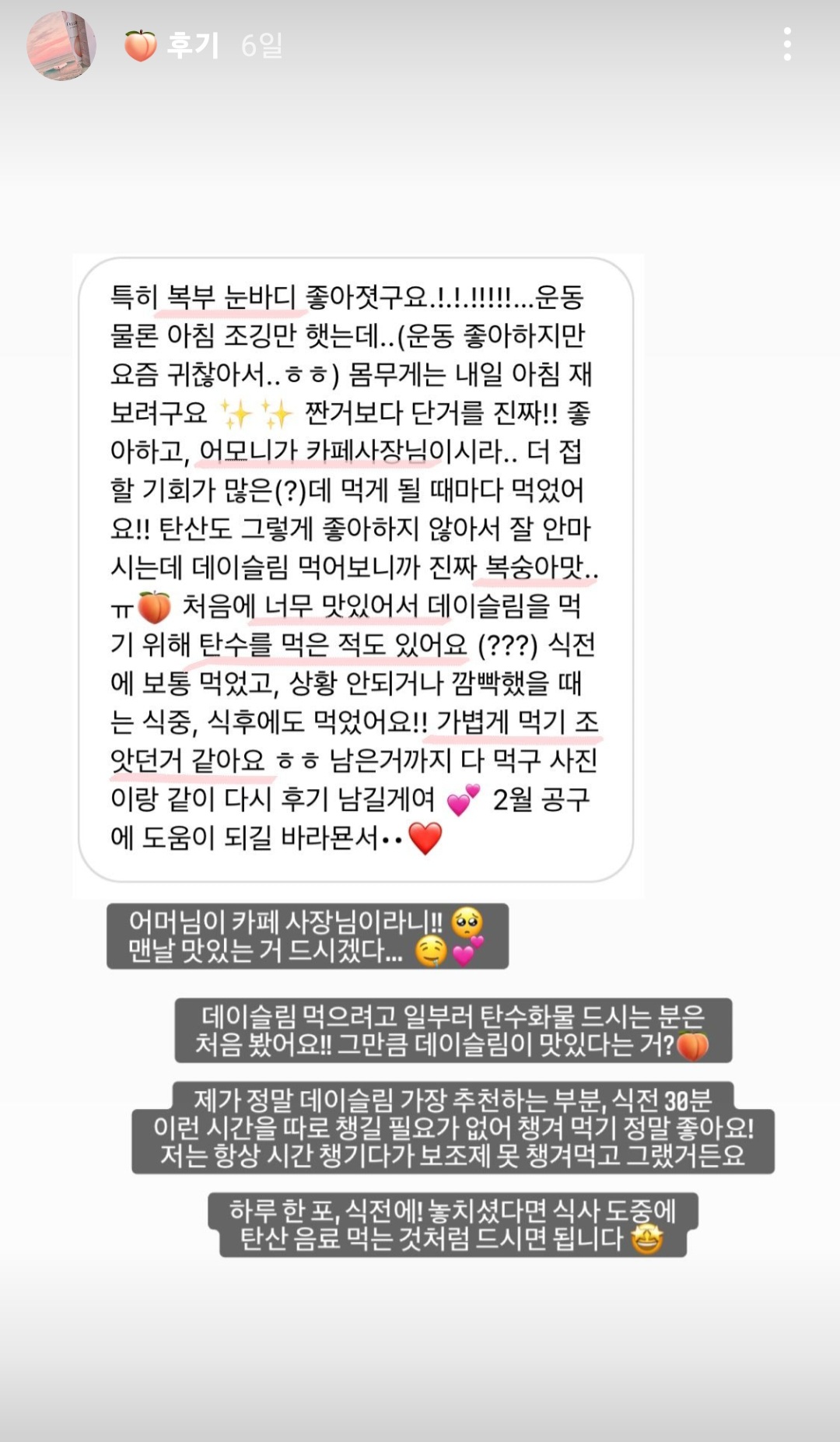 운동과 식단을 병행하면서 데이슬림 피치톡을 드시면