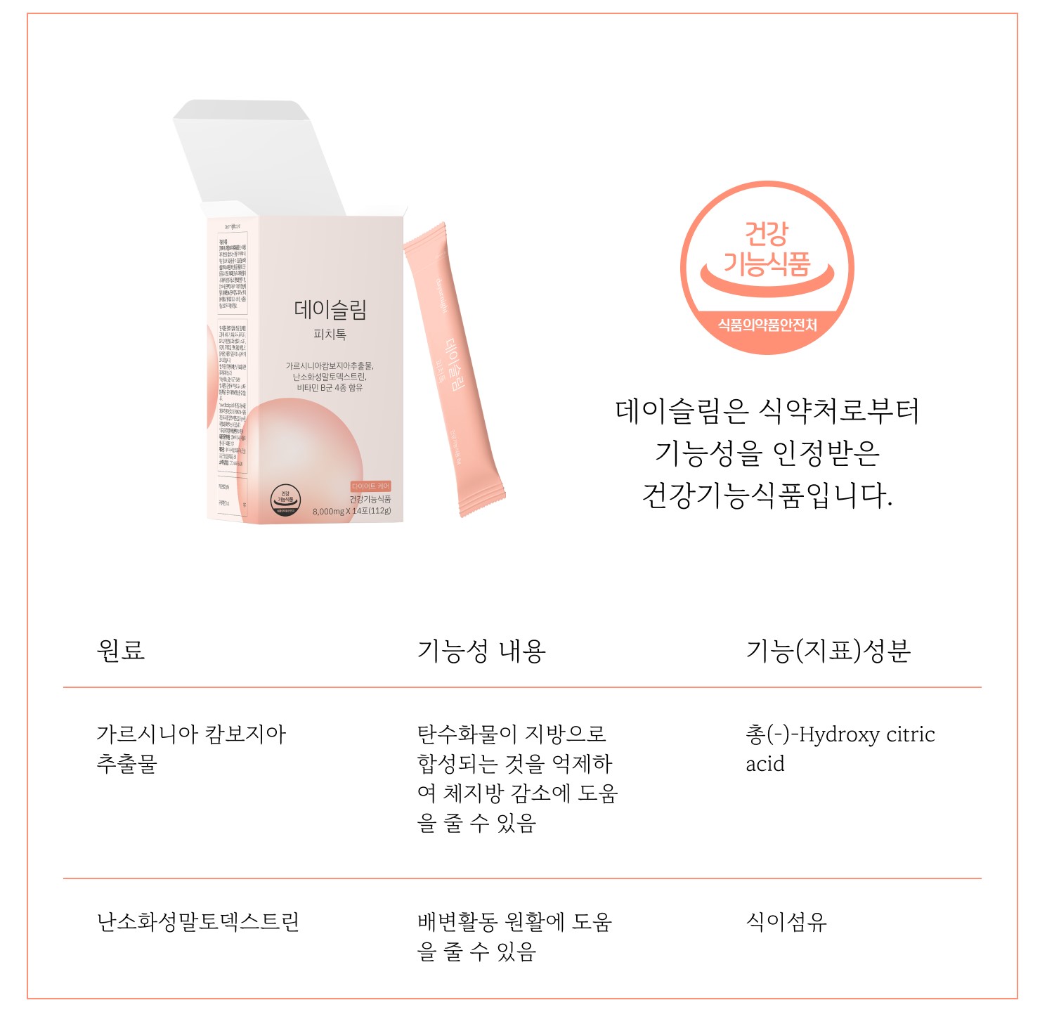 데이슬림 피치톡은 '건강기능식품' 표시가 돼서