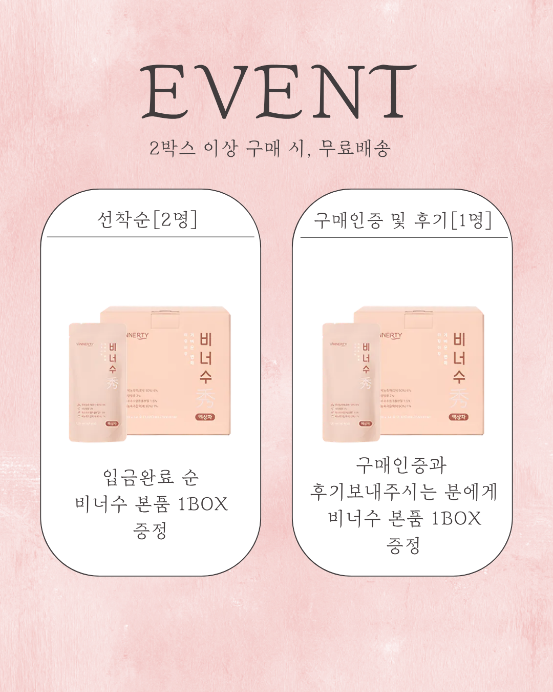 2. [1명] 구매인증 & 후기 : 비너수 본품 1박스 증정