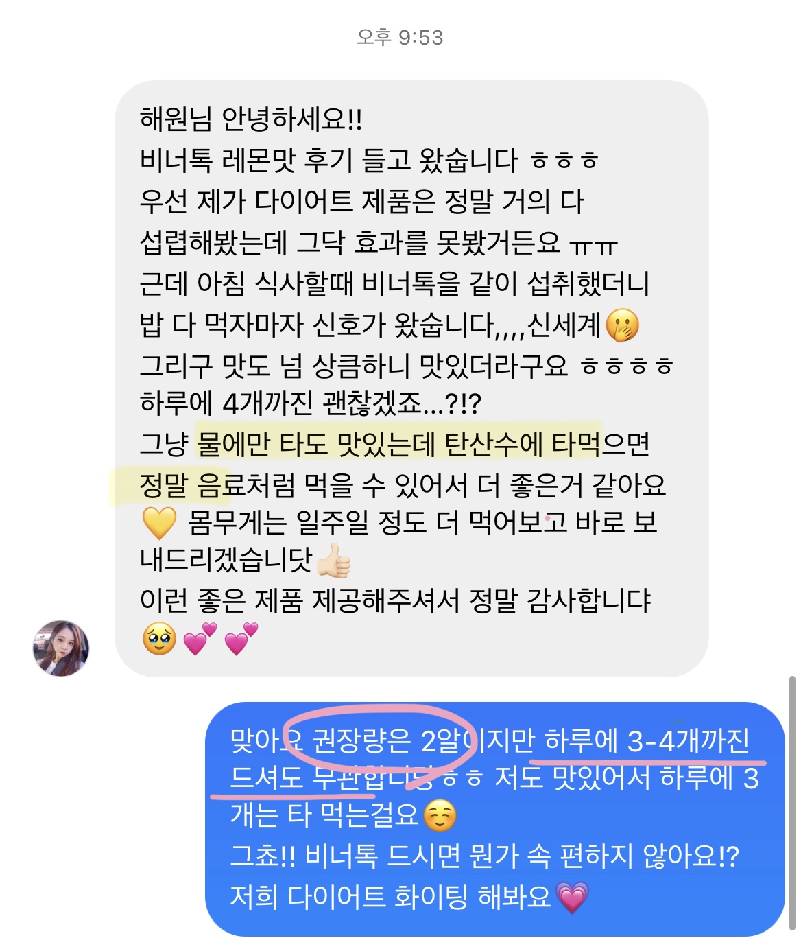 요 세개만 지키면서 먹고싶은 음식 잘 먹고 비너톡도 함께 먹어주니까