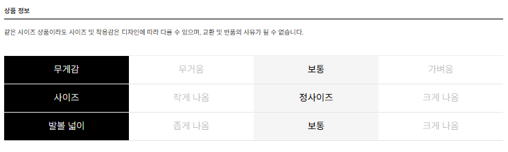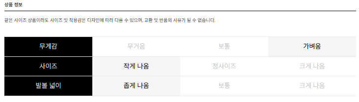 *사이즈 선택 기준은 개인에 따라 다양하며, 별도 사이즈 추천은 드리지 않는 점 양해 부탁드리며,