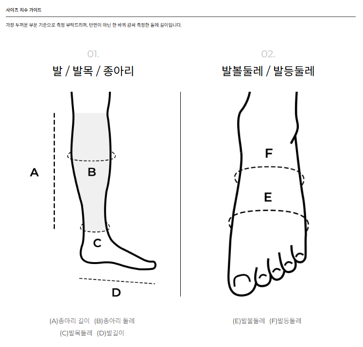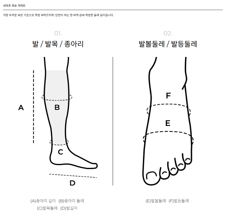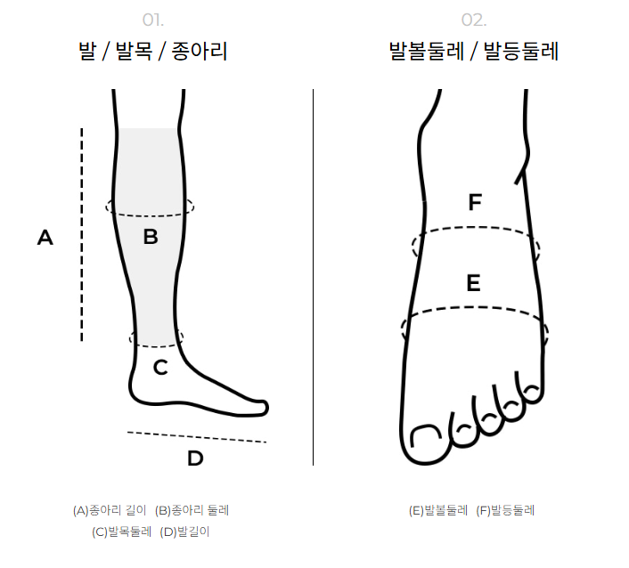 발목단면 14.5cm / 종아리단면 16.5cm / 입구단면 18.5cm