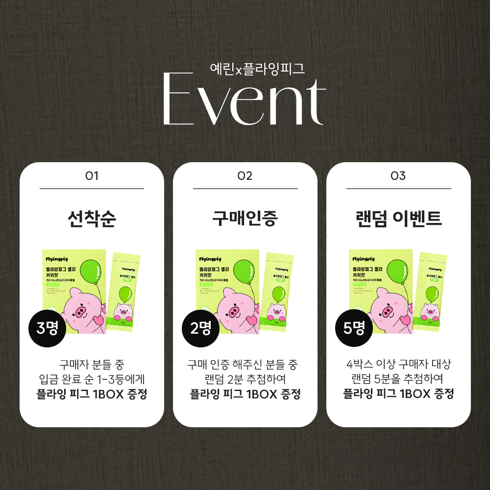1. 선착순 (입금 완료 순 1~3등) : 플라잉 피그 1BOX 증정