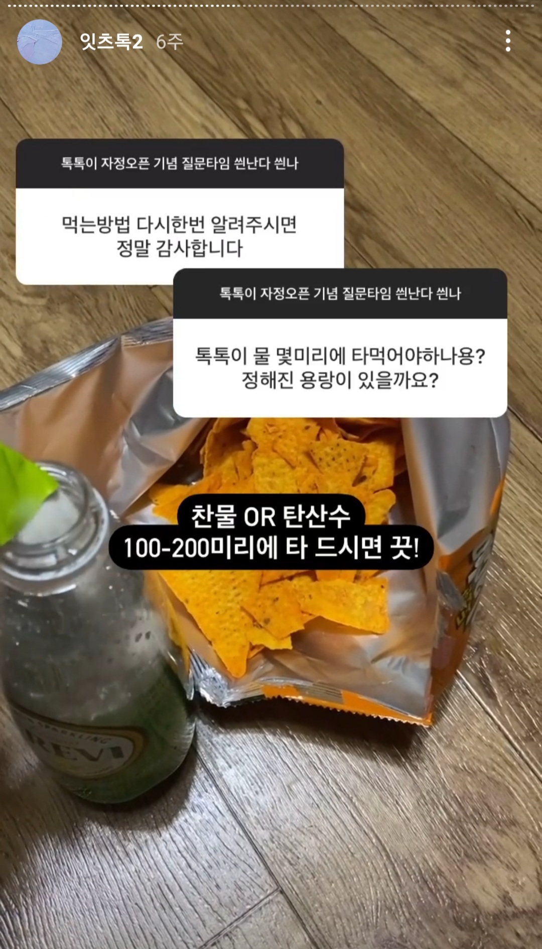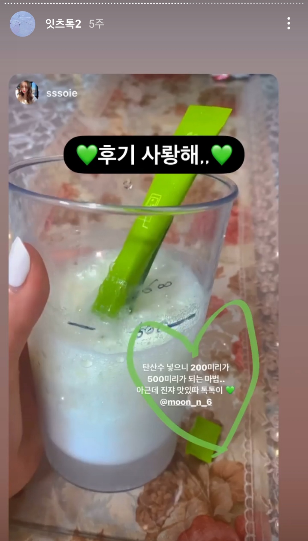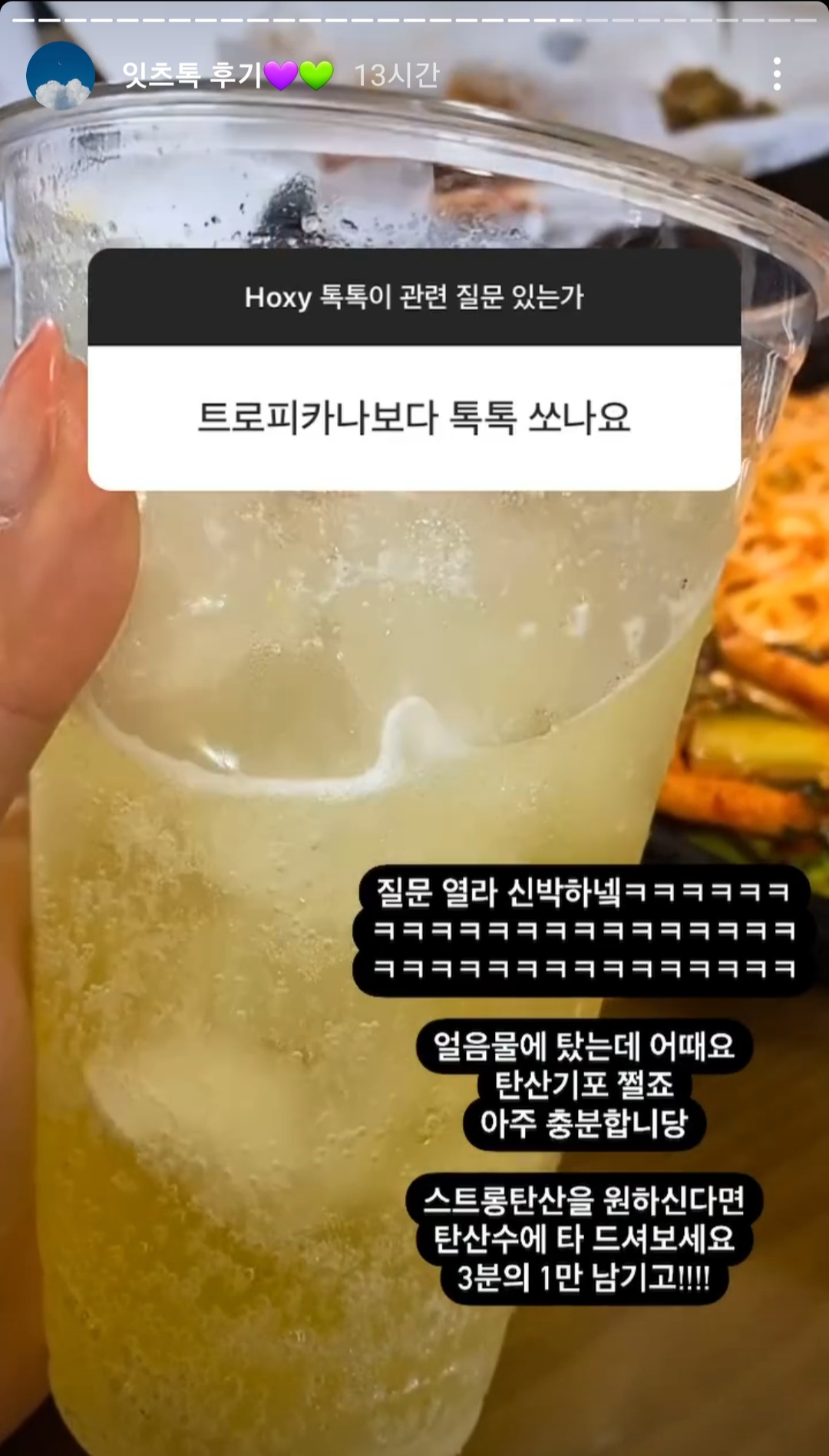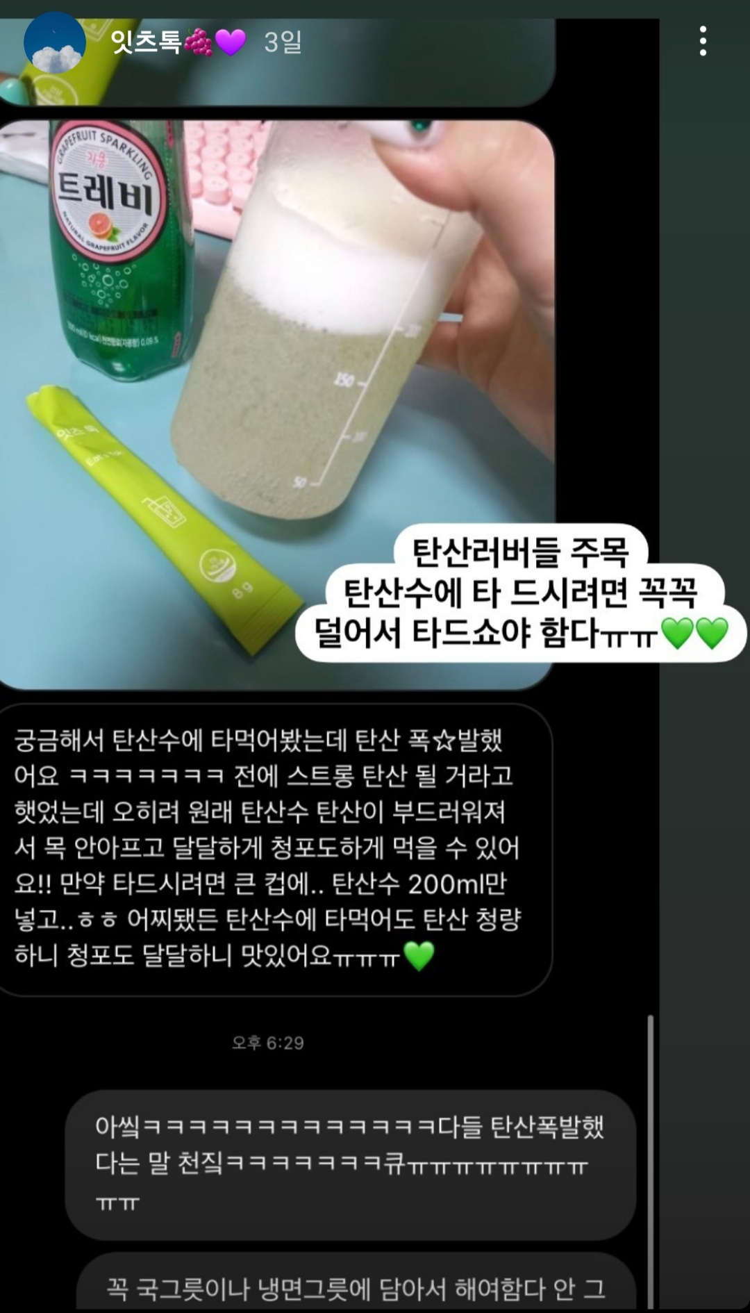 (탄산수에 먹을 때는 꼭 탄산수 반 이상 먹고 타기! 안그러면 폭발해요)