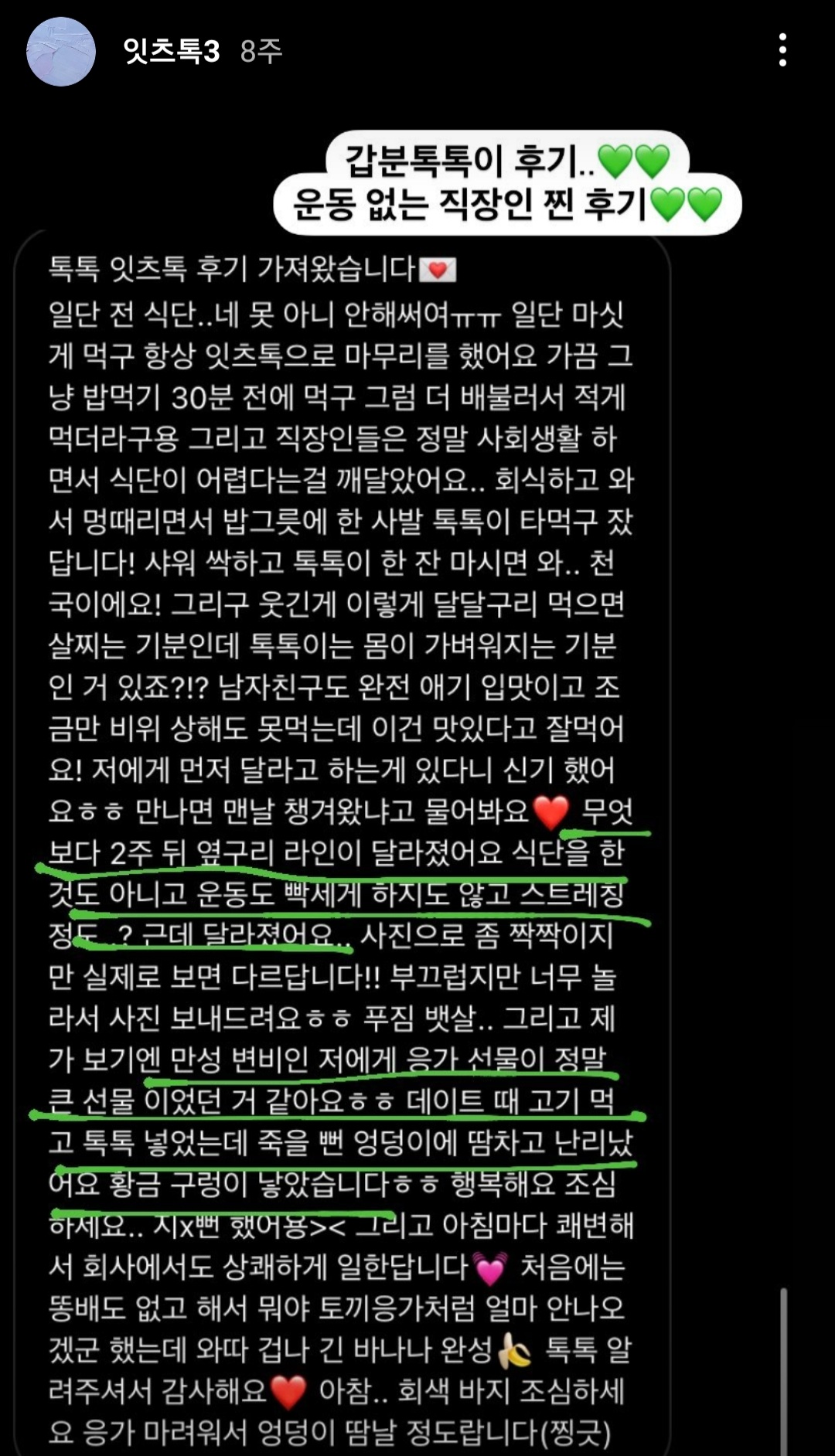 운동과 식단을 병행하면서 잇츠톡을 드시면