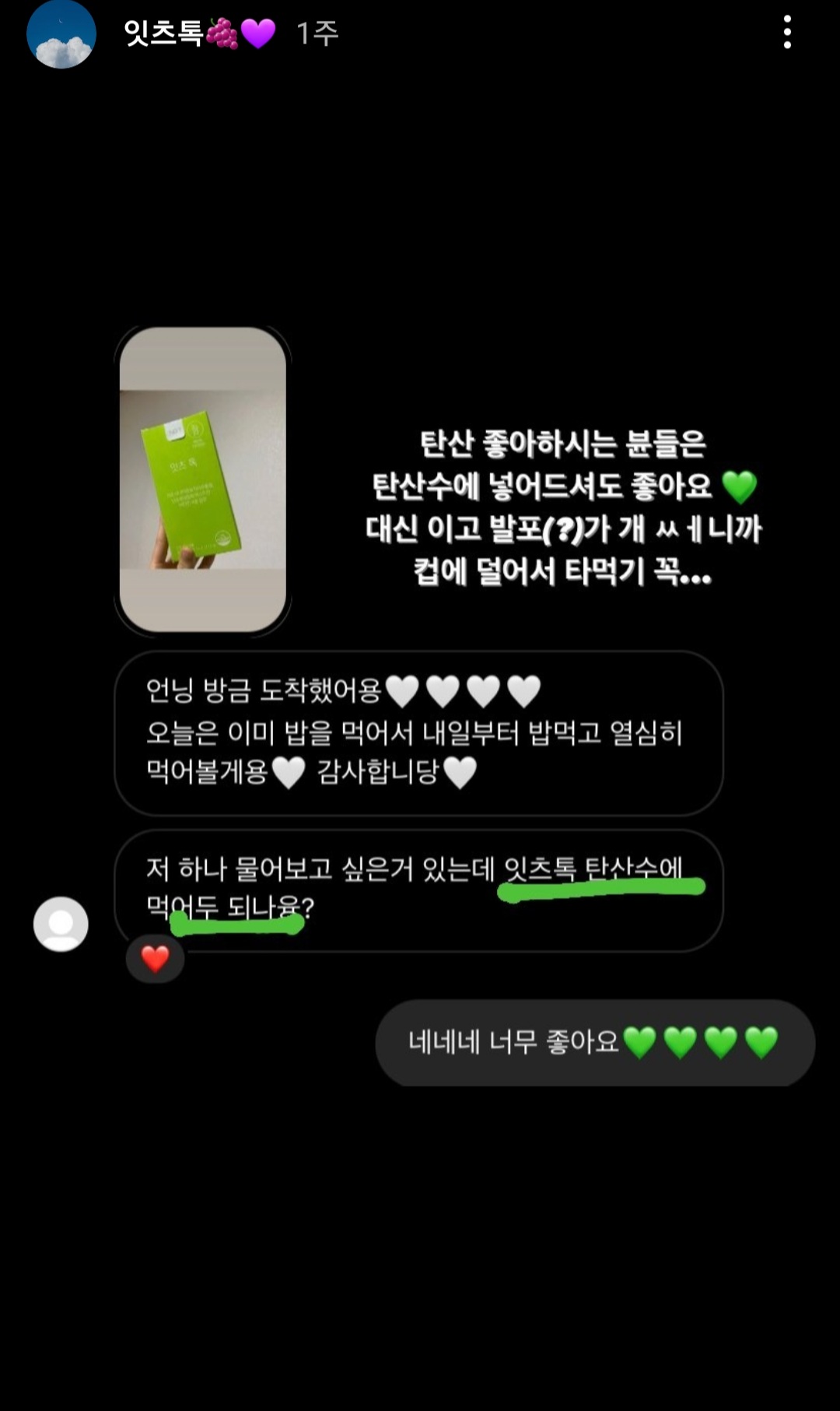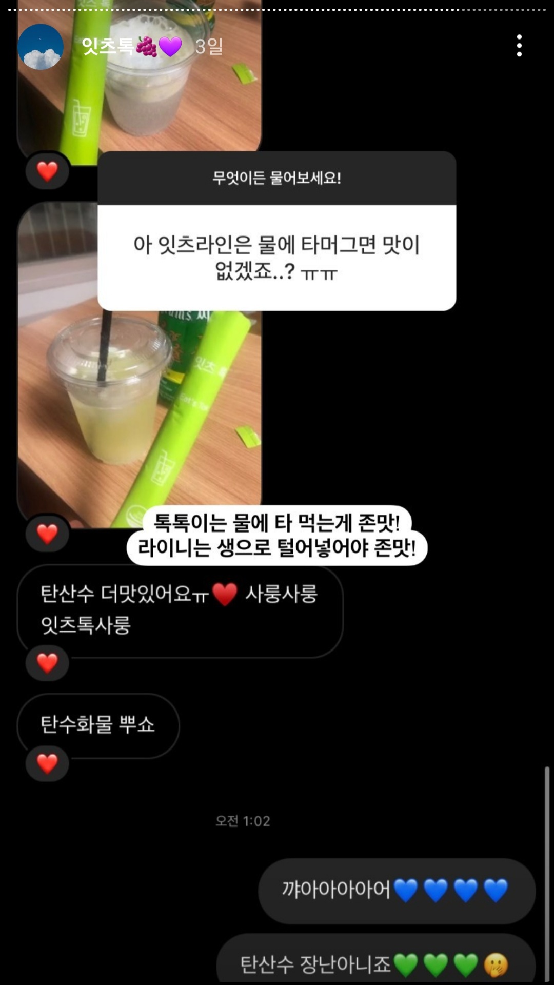 이제 저는 콜라 끊었고 잇츠톡으로 탄산음료 대신하고 있답니다!
