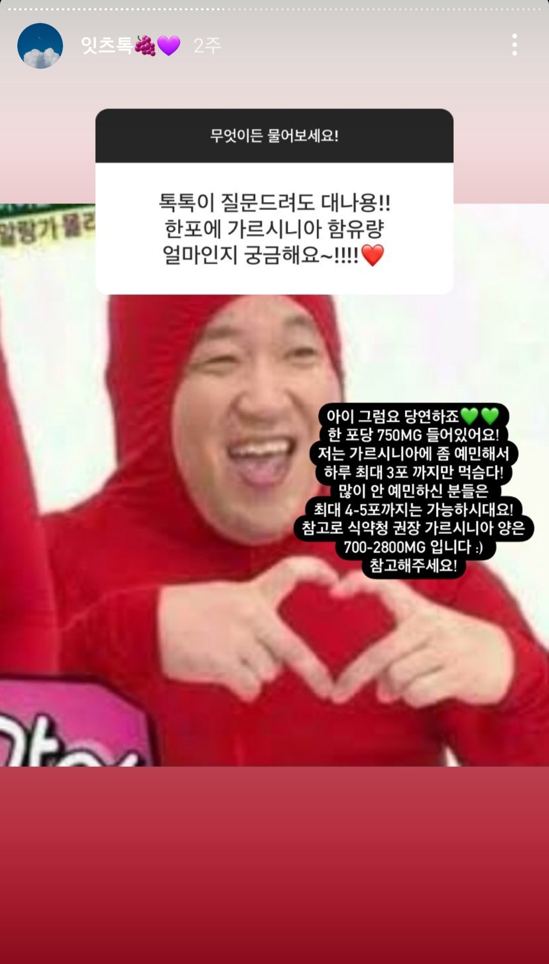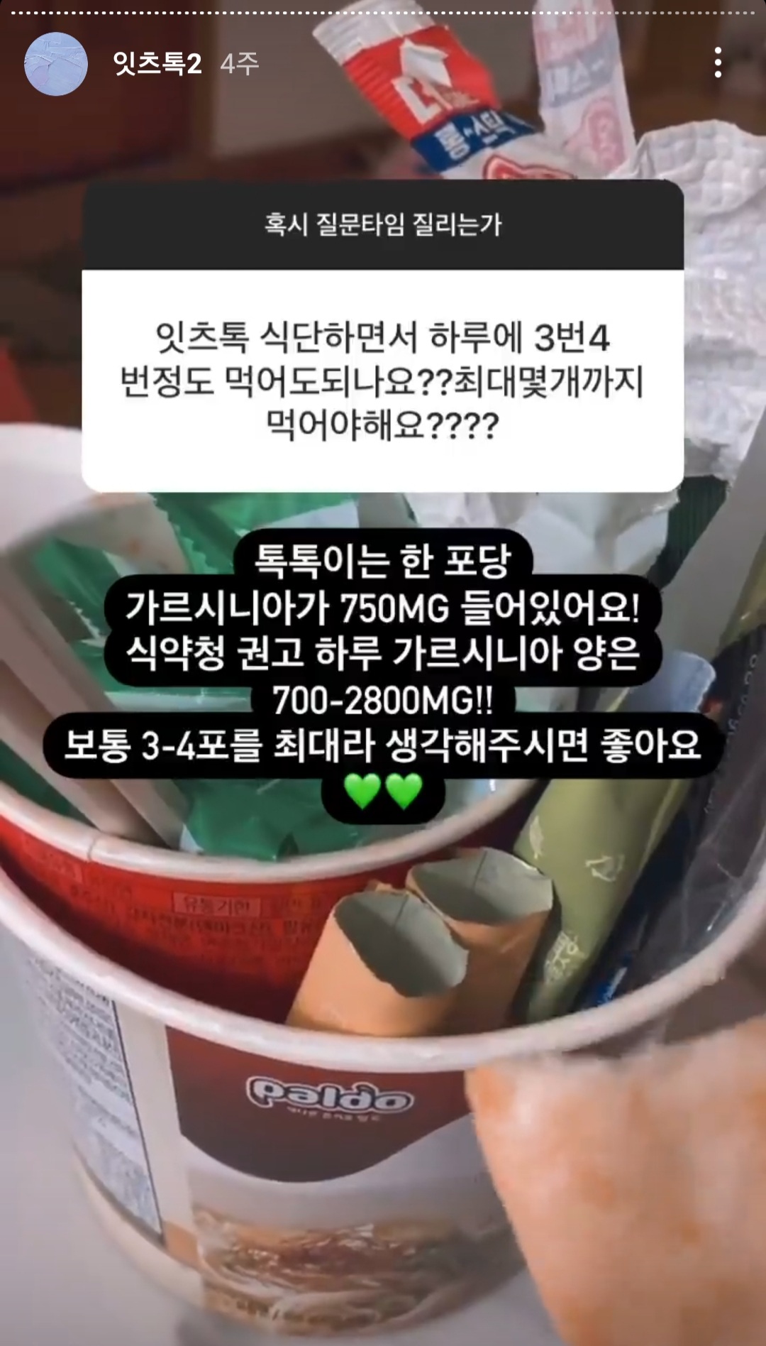 잇츠톡의 1포당 가르시니아 함량은 딱 750mg이라