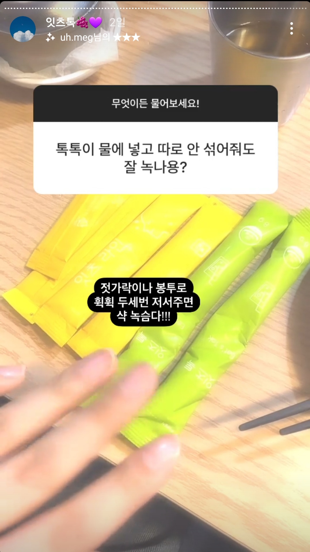 잇츠톡 봉지나 빨대, 젓가락같은걸로 한 3번 저어주면 3초컷으로 녹으니까