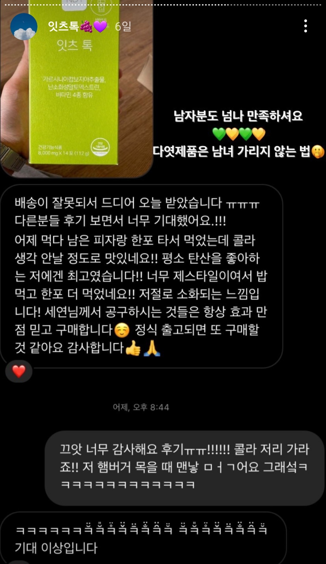 구매자 분들도 너무너무 효과 좋다고 후기 많이 보내주셔서