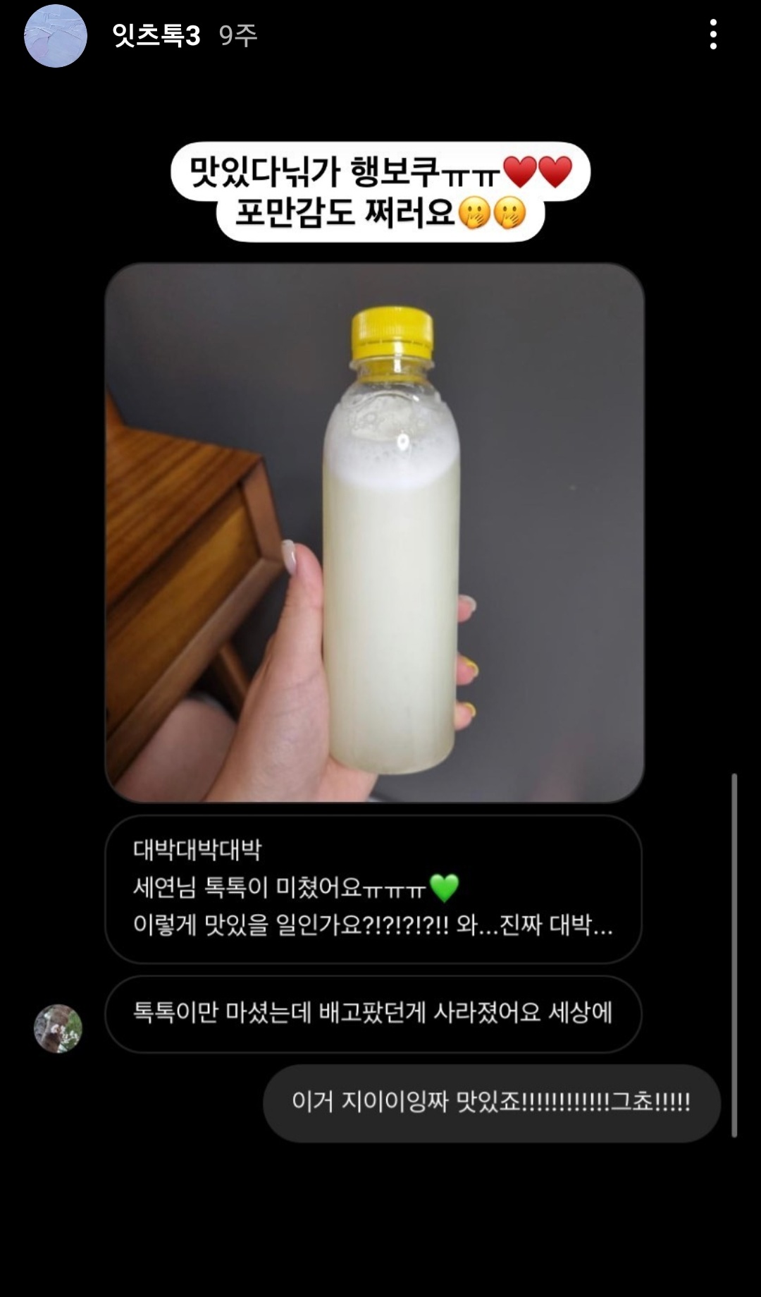 잇츠톡 드시자마자 바로 신호와서 화장실 가신다고ㄷㄷ