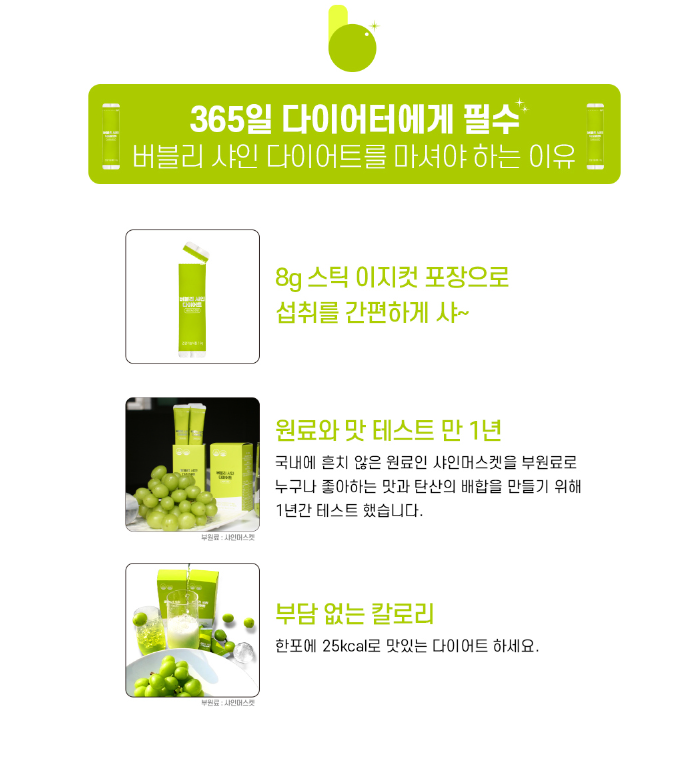 샤인머스캣맛에 톡 쏘는 탄산을 더했어요