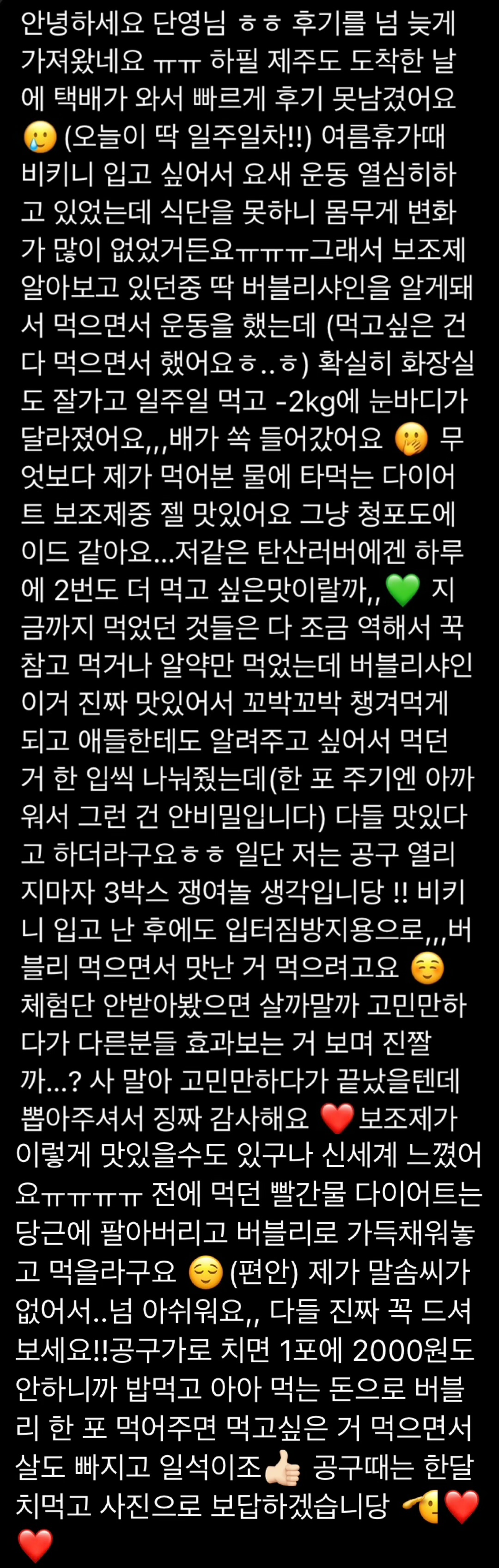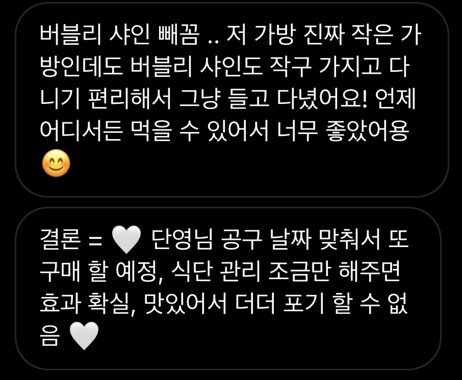 여러분! 운동이랑 식사량 조절하면서 버블리 먹으면