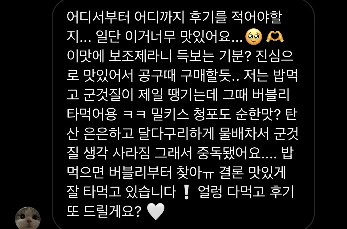 후기 궁금하다고 스토리 올렸었잖아요?!
