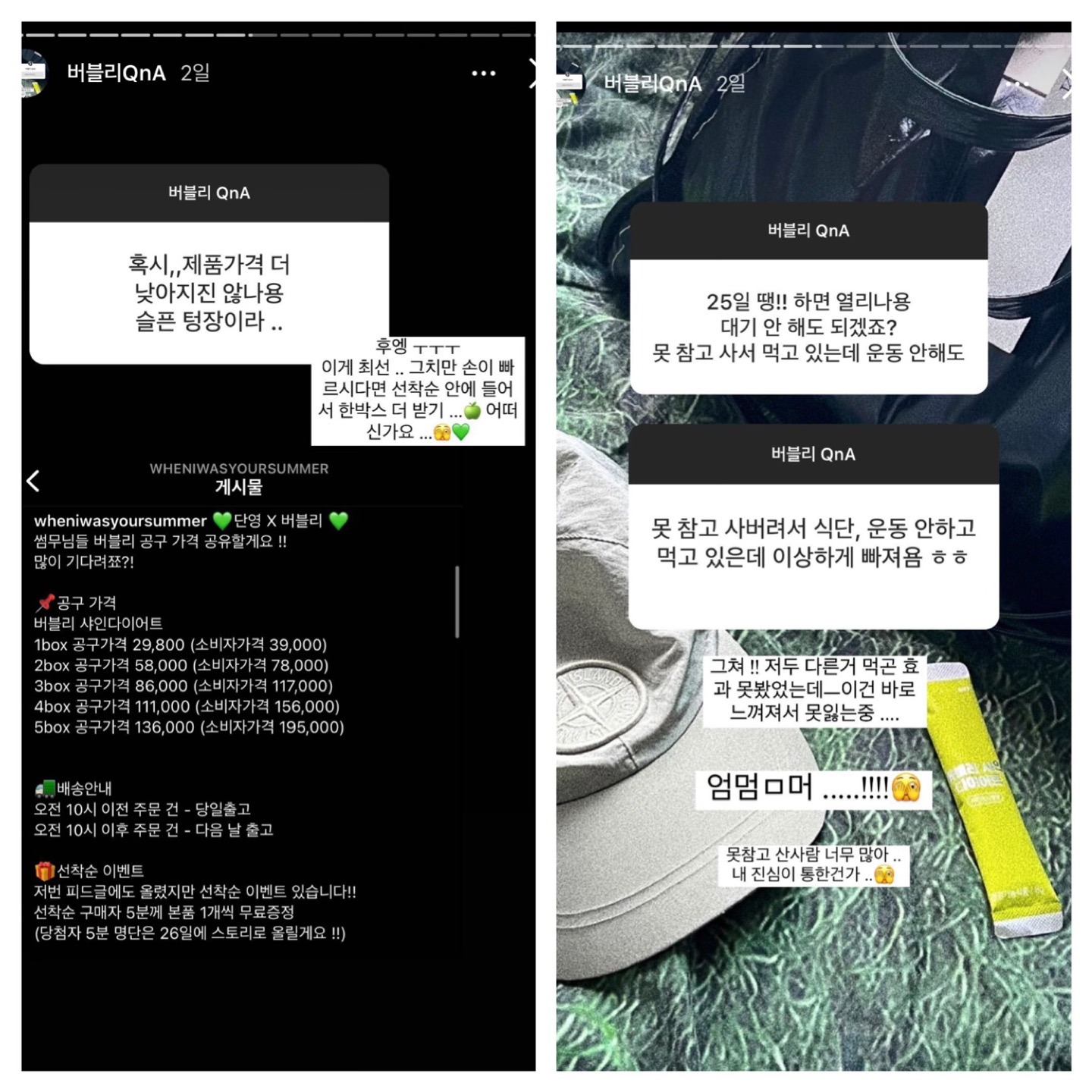버블리 공구해서 사 먹고 핫 한 여름 보내겠대요 ... ㅋㅋ