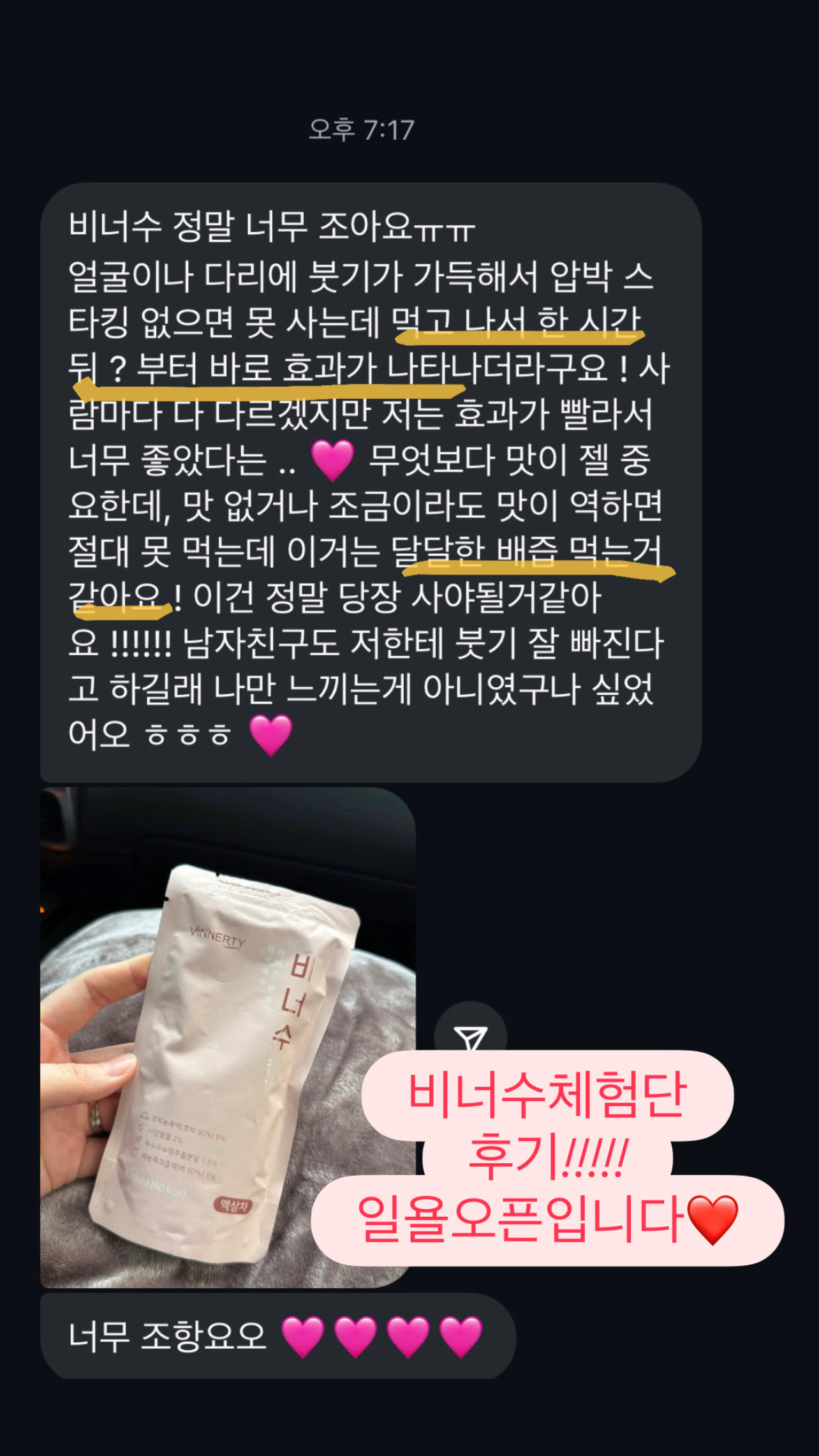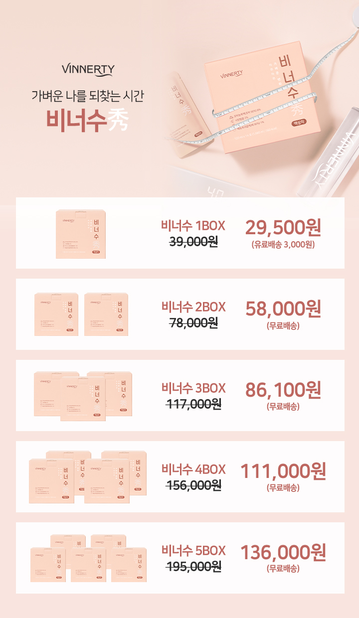 1) 선착순 이벤트 2명 : 비너수 본품 1박스 추가 증정