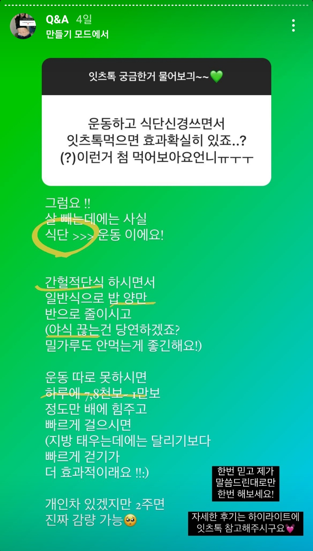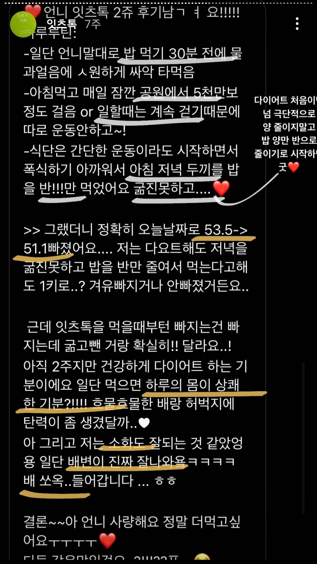 운동과 식단을 병행하면서 잇츠톡을 드시면