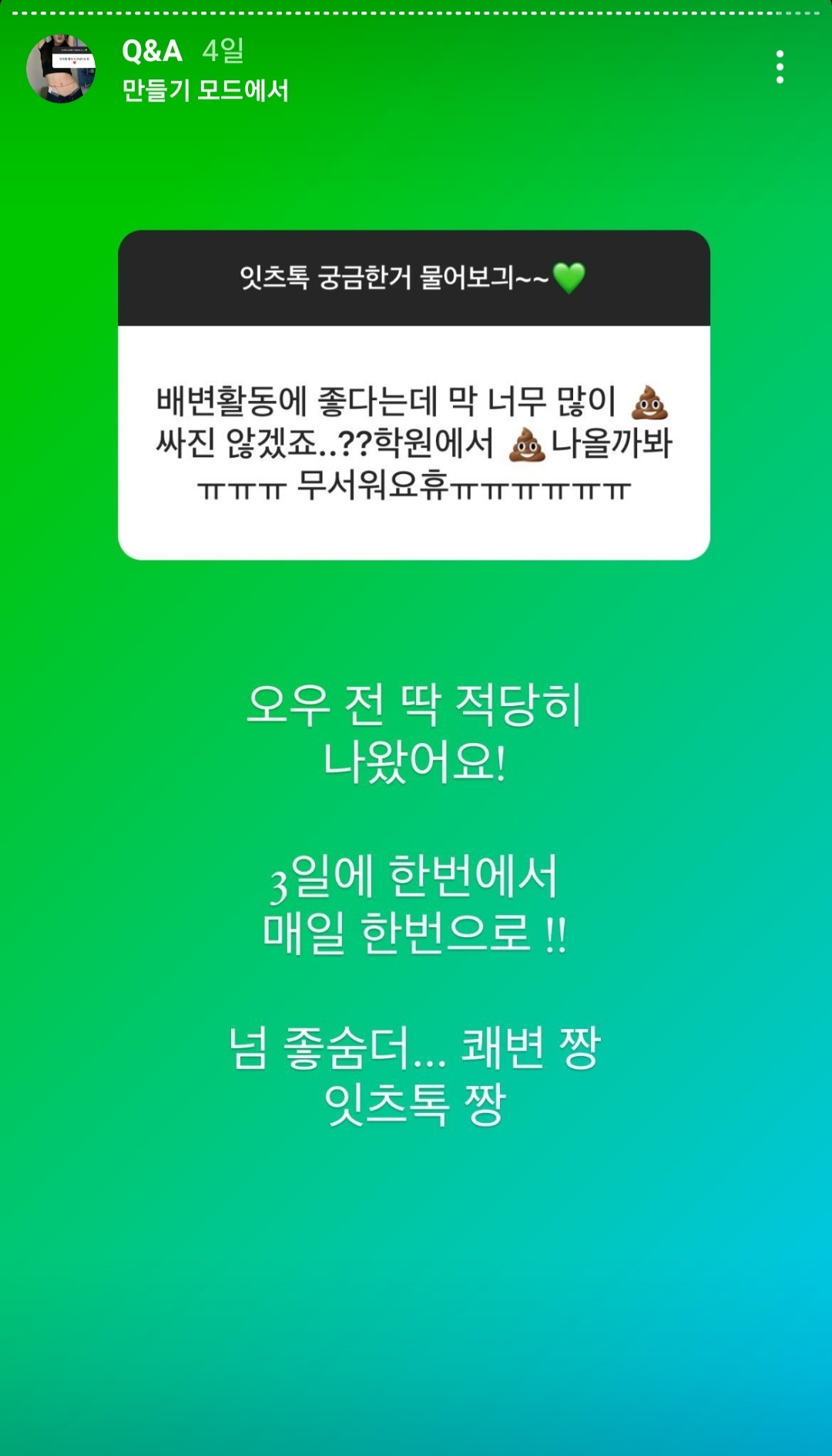 근데 저 이제 3일에 한번 가던 화장실 매일 가는 중!!