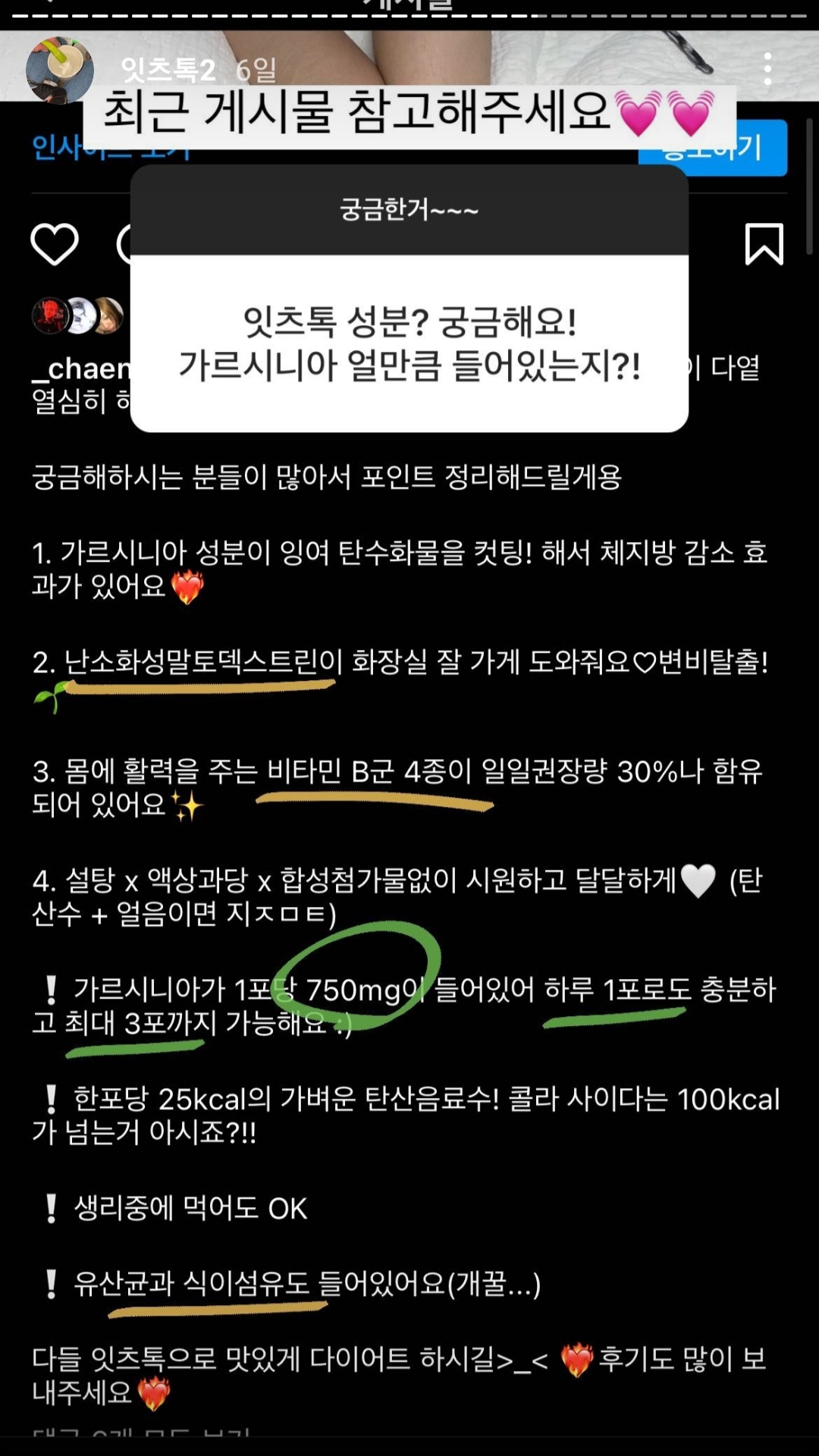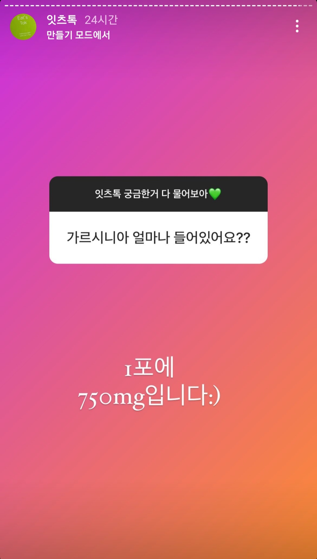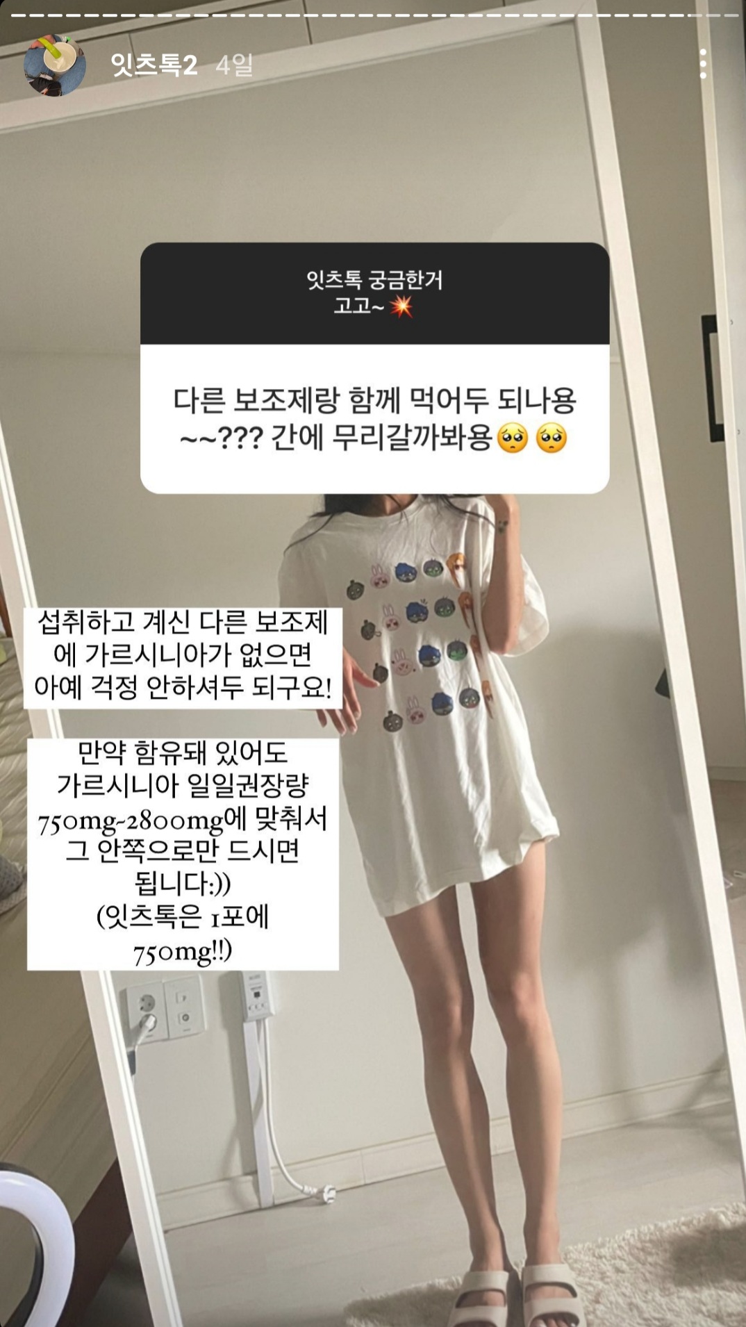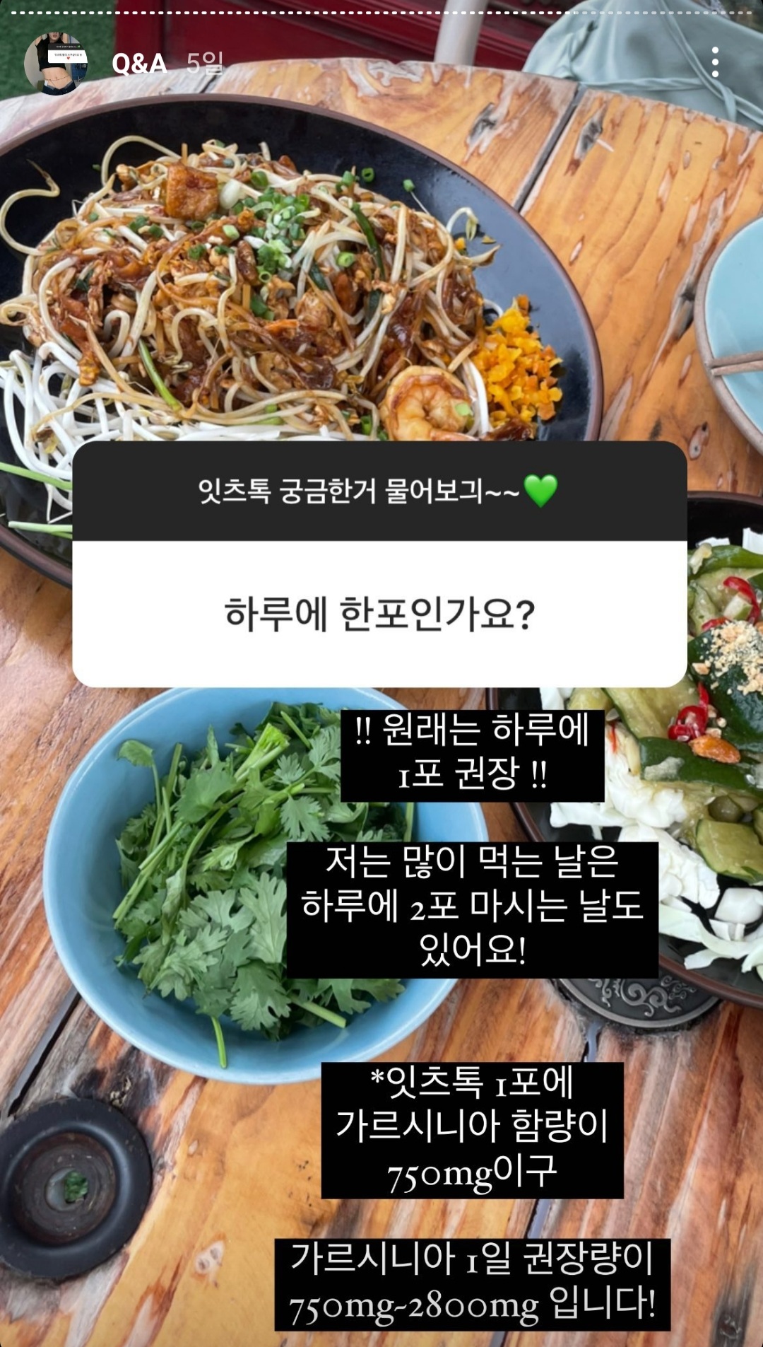 잇츠톡의 1포당 가르시니아 함량은 딱 750mg이라