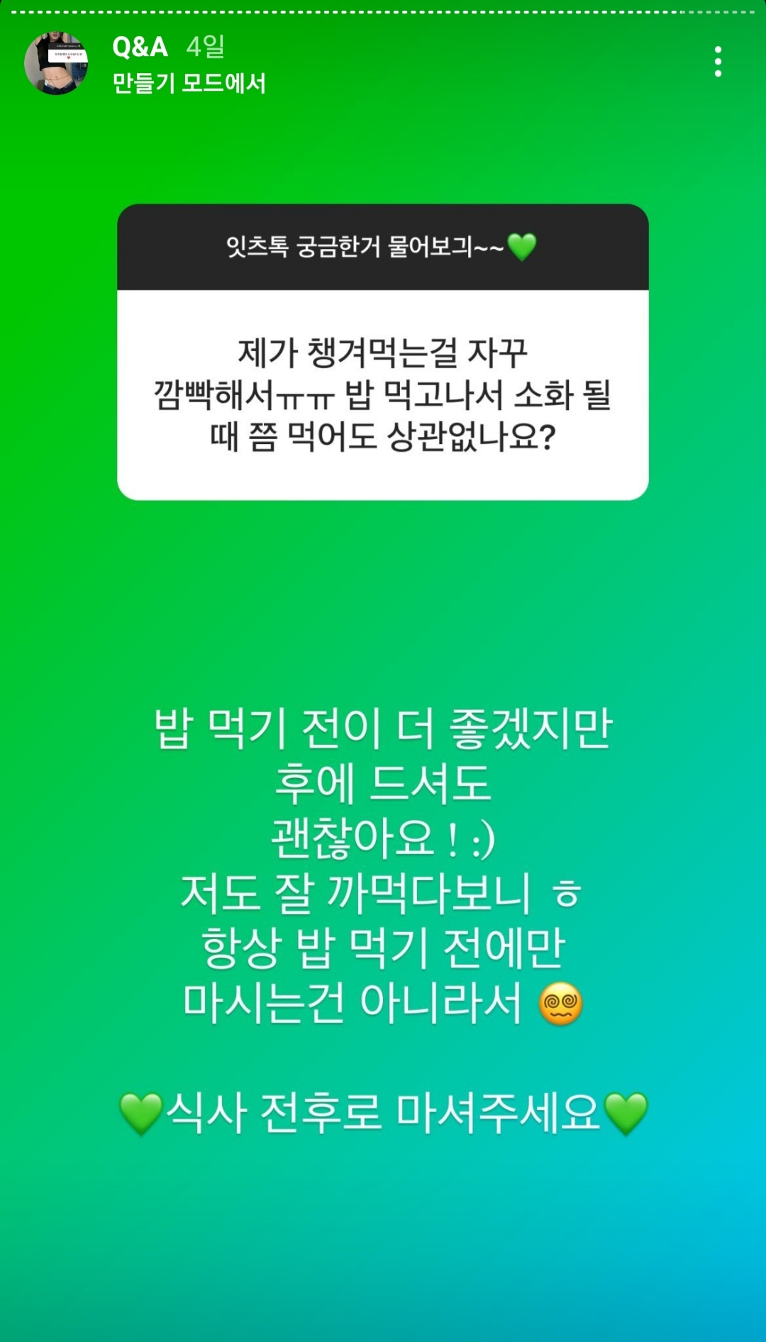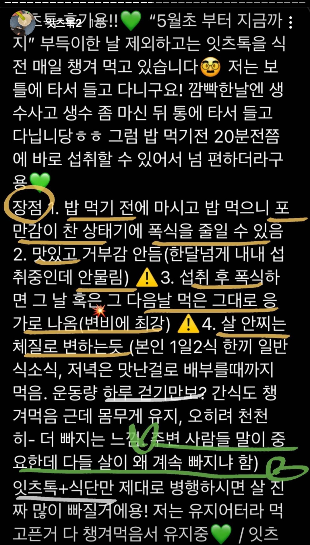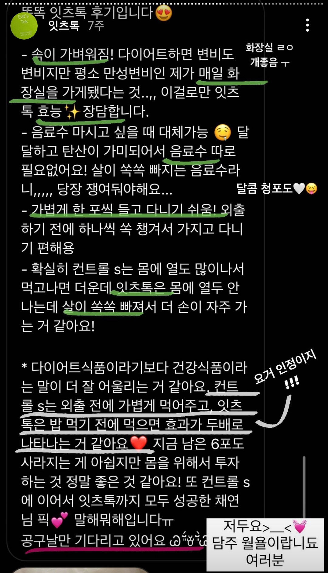 저는 잇츠톡을 거의 작년 4월 초부터 먹기 시작했구