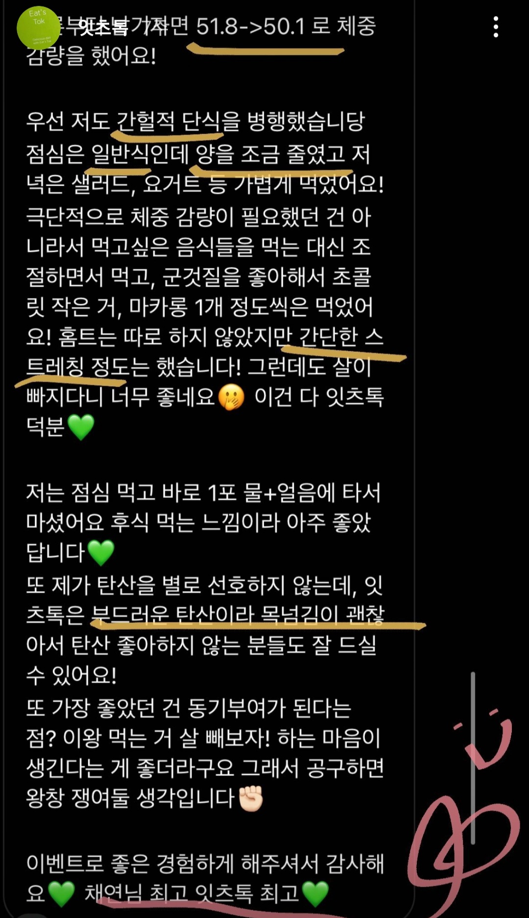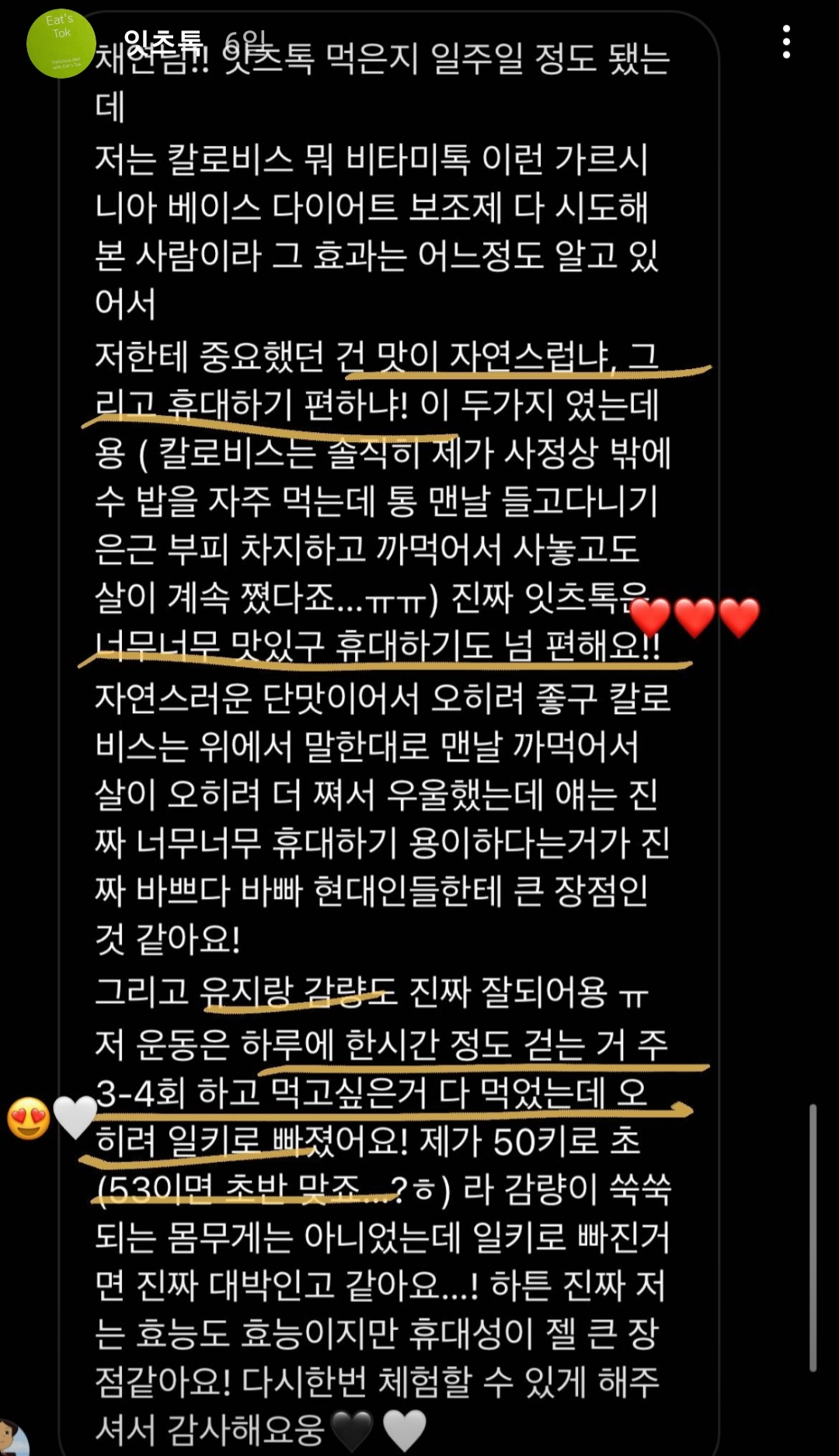 잇츠톡은 제가 지금까지 먹어 봤던 다이어트 보조제품들 중에