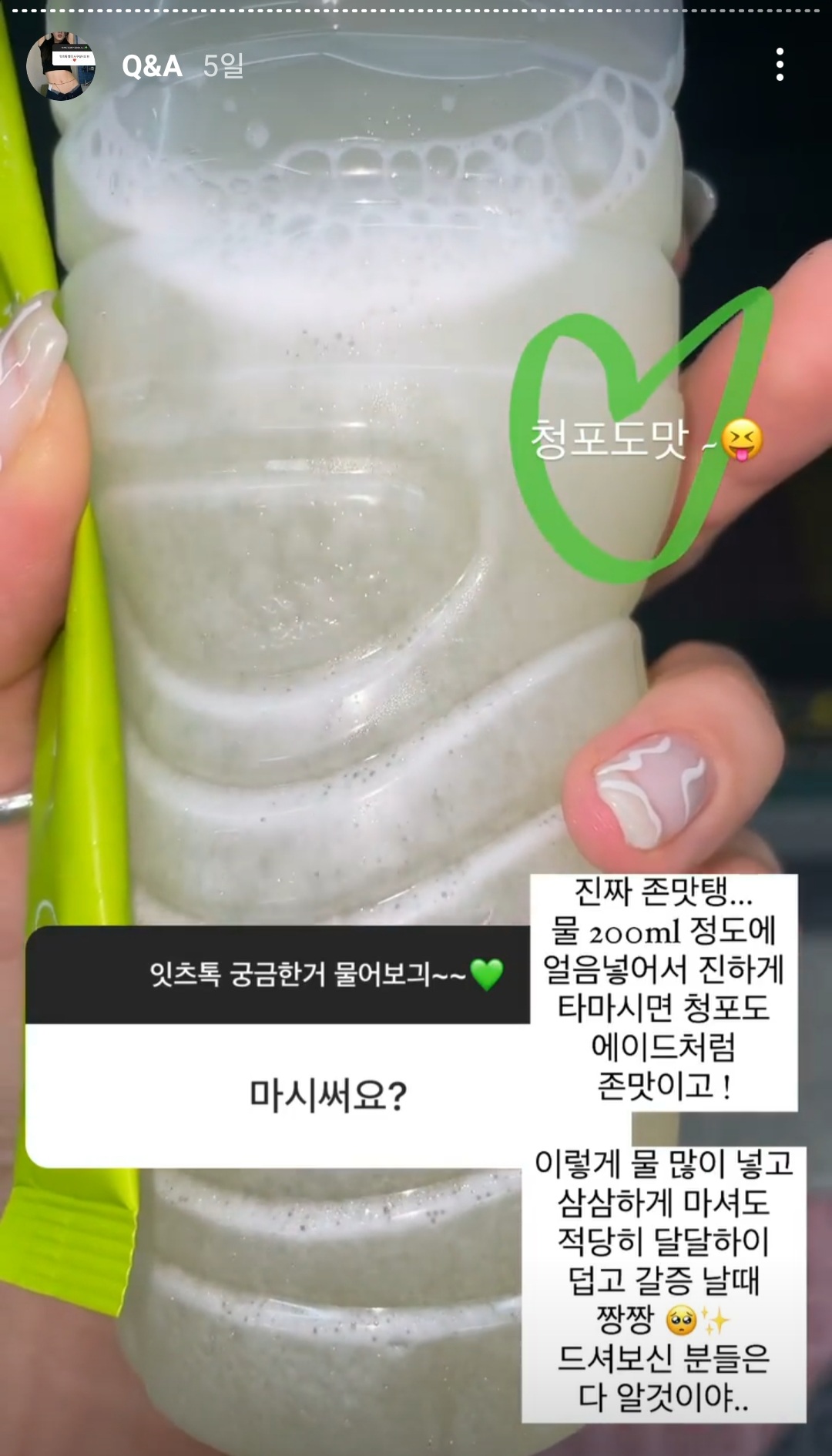 개인적으로는 청포도맛 음료수랑 비슷하더라구요!