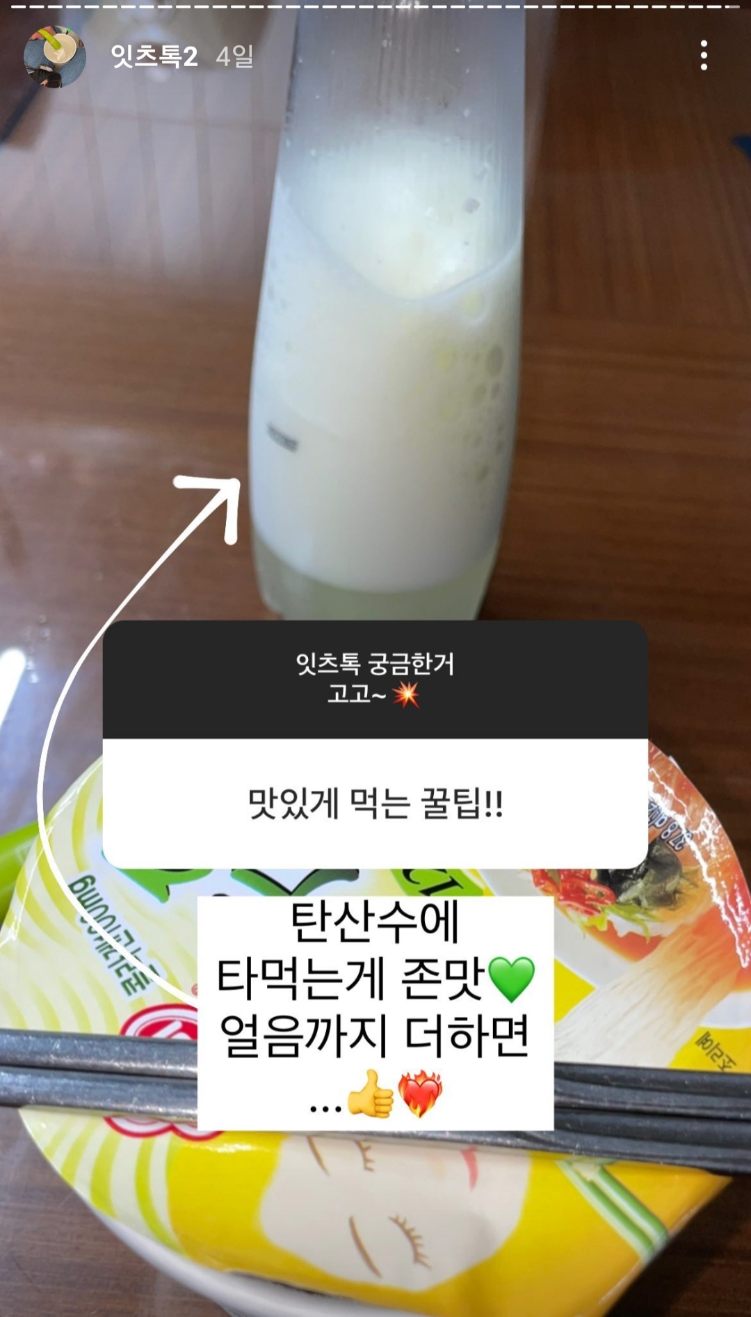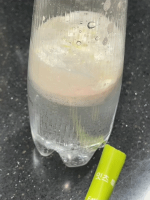 (탄산수에 먹을 때는 꼭 탄산수 반 이상 먹고 타기! 안그러면 폭발해요)