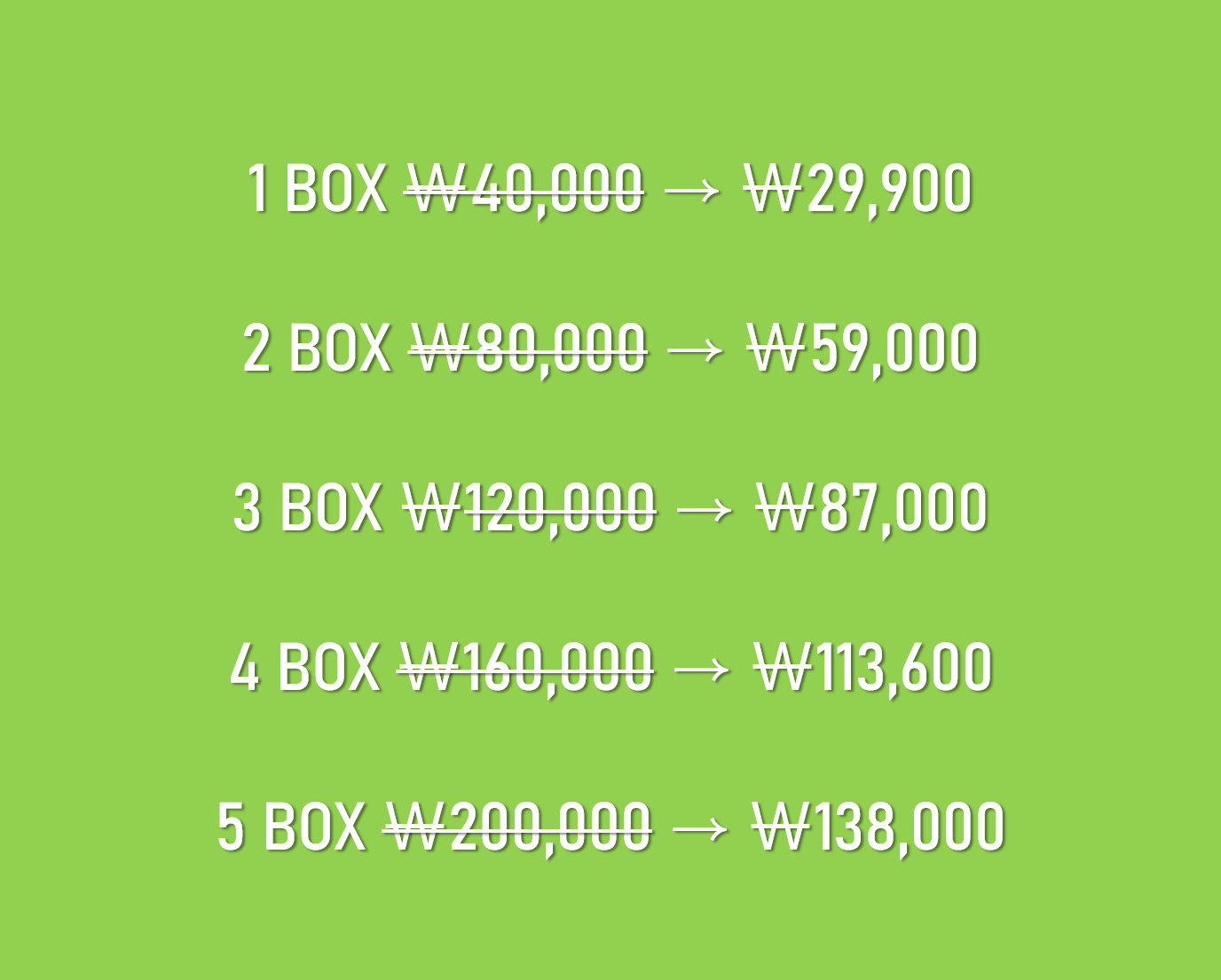 5박스 초과해서 구매하셔도 5박스 할인율로 계산되기 때문에