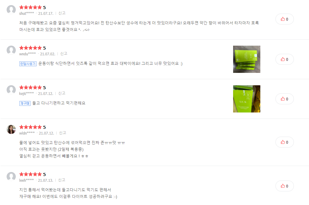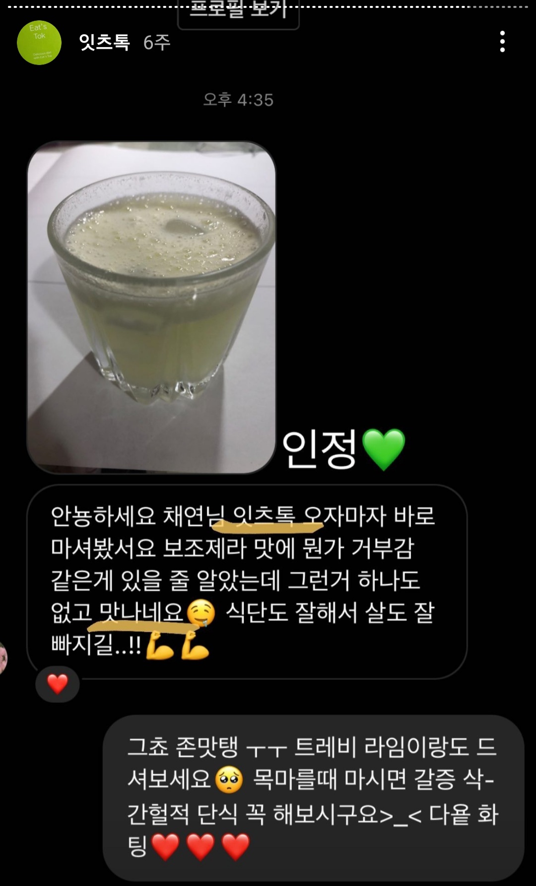 제일 상큼하고 맛있어서 다이어트 보조제품이 이렇게 맛있다고?! 하는 생각이 들 정도에요!