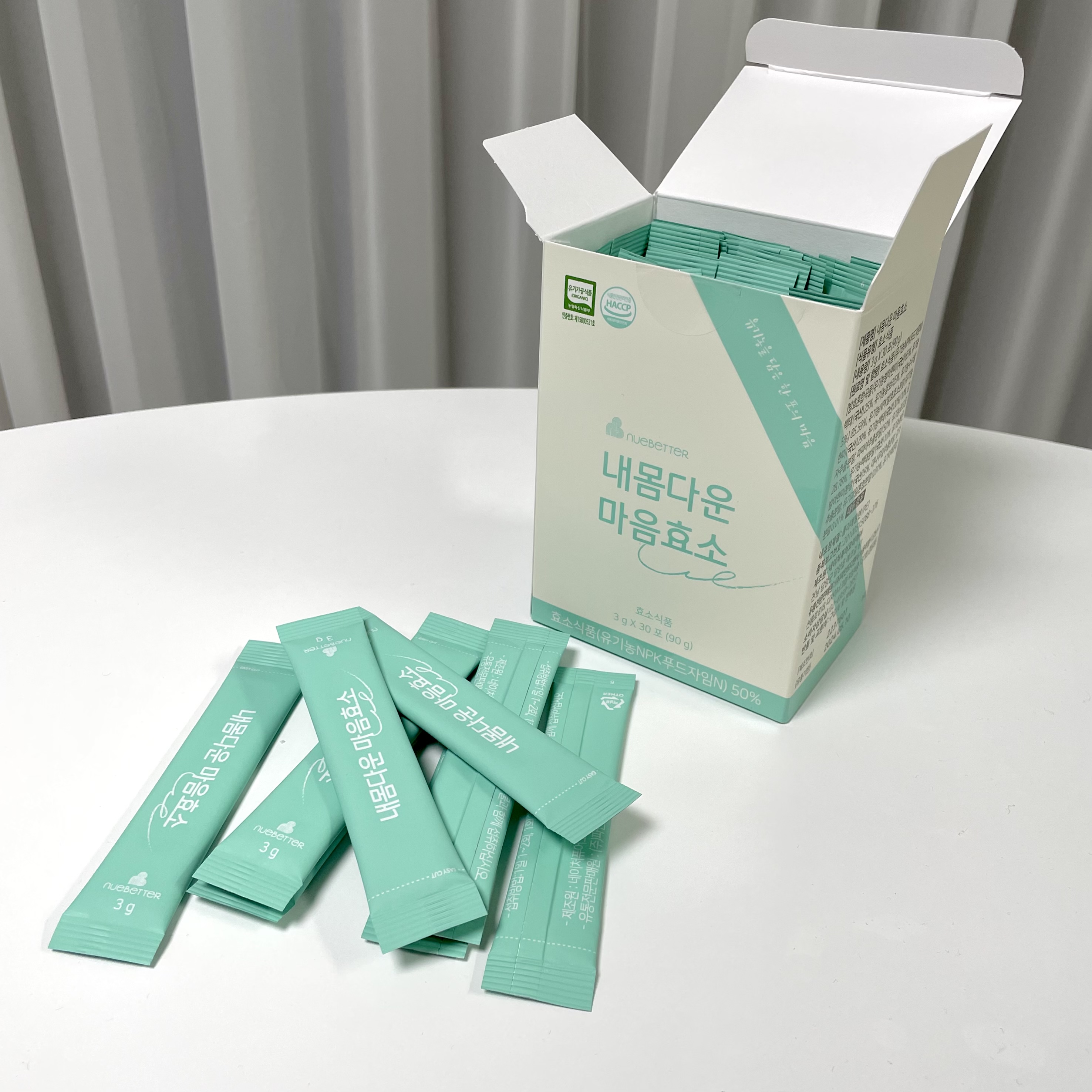 저는 작심삼일이 되게 심해서 꾸준히 먹는걸 절대 못하는데 내몸다운 마음효소는 휴대성도 좋고 콩가루인절미 맛이라 넘 맛있어서 매일 매일 잘 챙겨먹고 있어요❤️